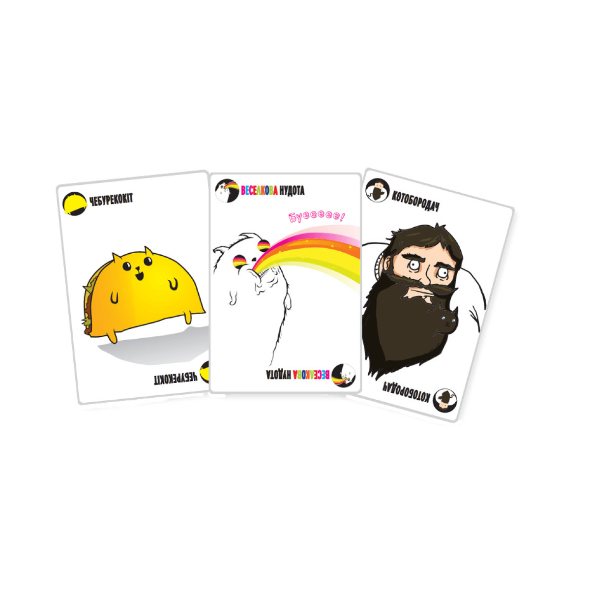 Весела гра для вечірок, що стала надзвичайно популярною після успішної кампанії на «Кікстартері» під назвою Exploding Kittens. Гра може похвалитися простим, інтуїтивно зрозумілим ігровим процесом і дуже кумедним іронічним сетингом з вибухаючими милими котиками.