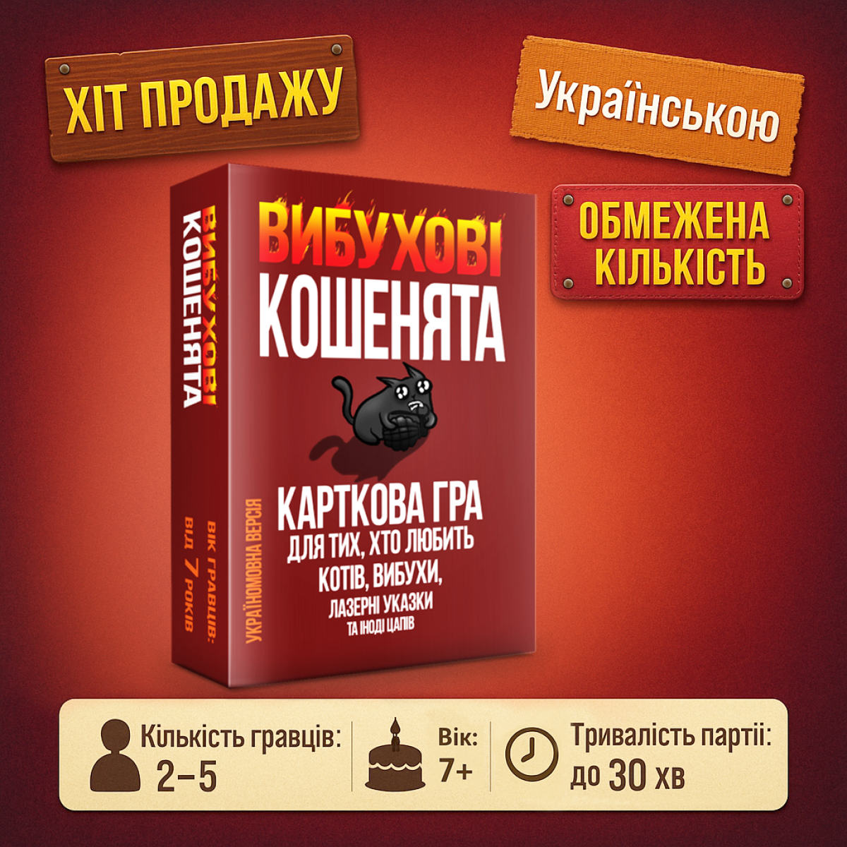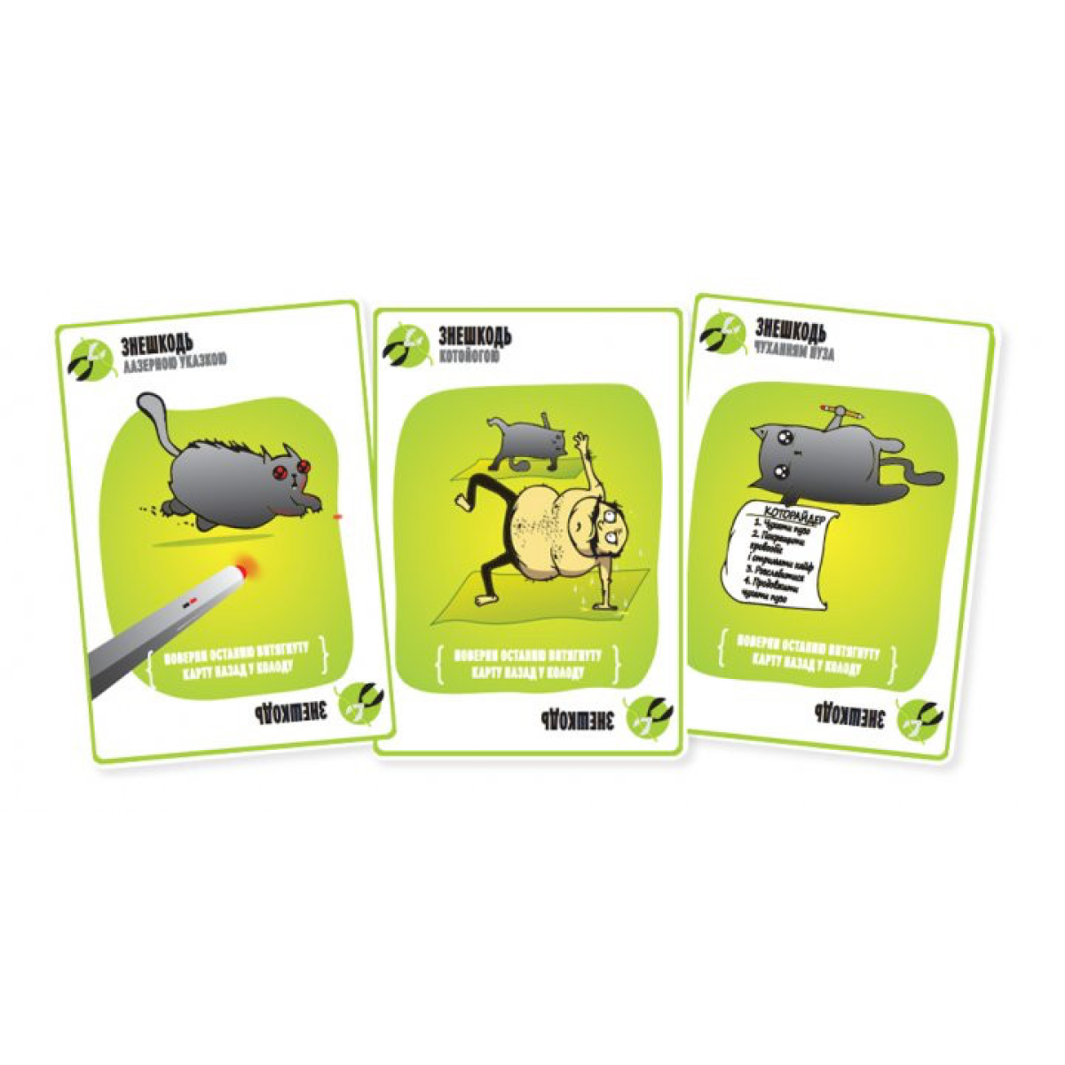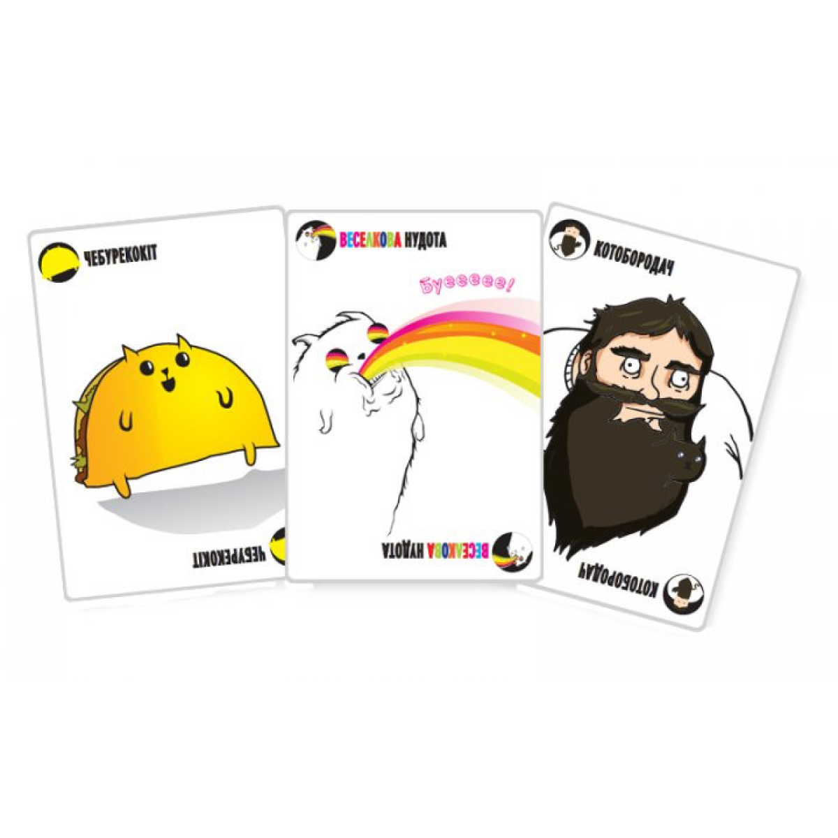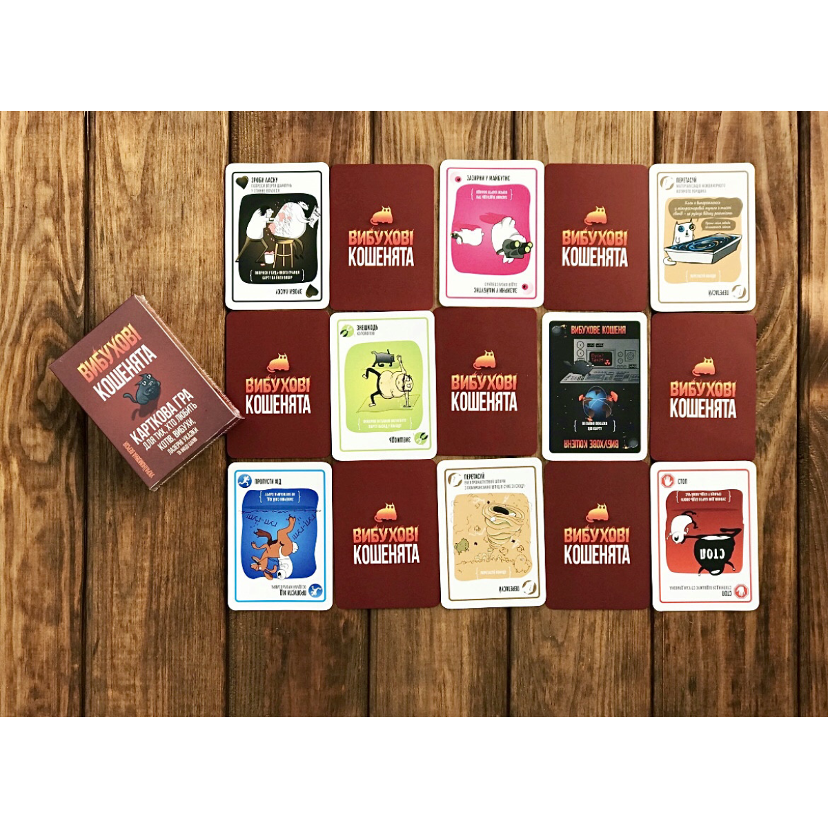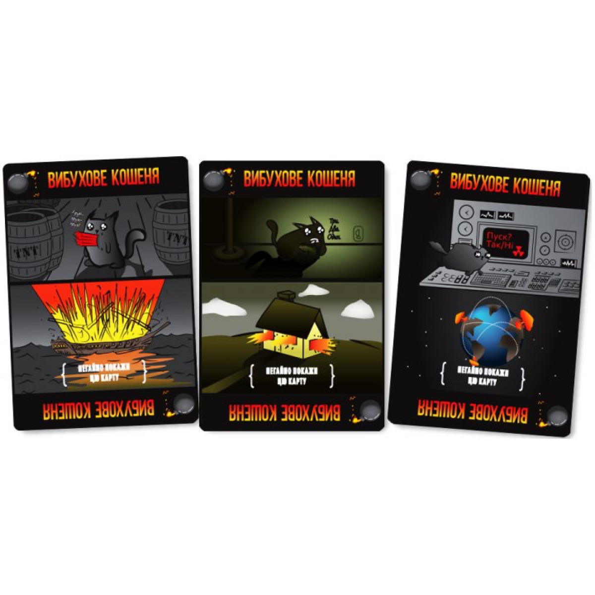Весела гра для вечірок, що стала надзвичайно популярною після успішної кампанії на «Кікстартері» під назвою Exploding Kittens. Гра може похвалитися простим, інтуїтивно зрозумілим ігроладом і дуже кумедним іронічним сетингом з вибуховими милими котиками.