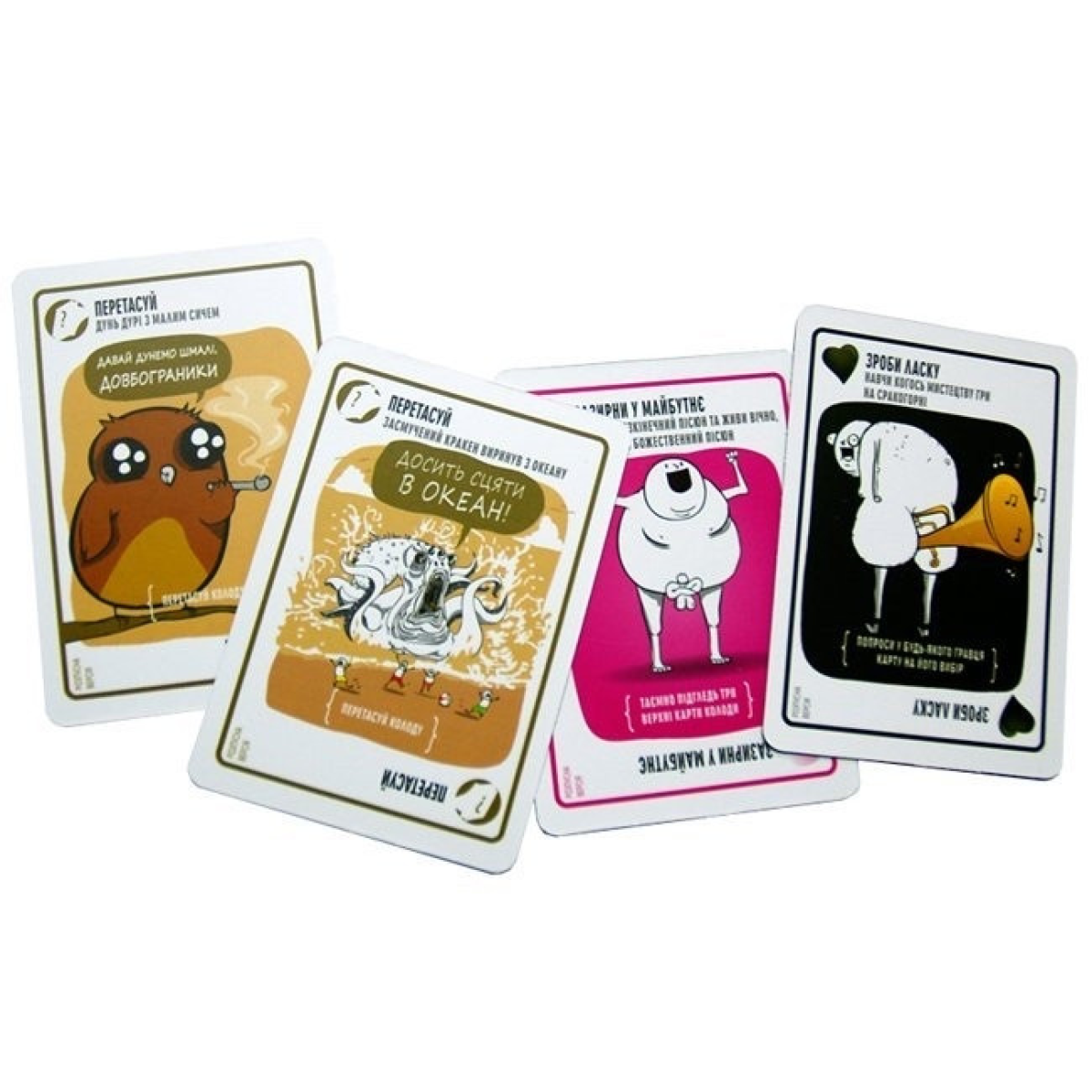 Не варто думати, що перемога чи поразка в грі «Вибухові кошенята» залежить лише від везіння. У грі є необхідний стратегічний інструментарій, щоб приборкати пані Удачу. Наприклад, за допомогою одних карт можна спасувати, не добираючи карту, а завдяки іншим можна не тільки пропустити хід, але і змусити наступного гравця добрати зайву карту. Деякі карти дозволяють підглянути три верхні карти колоди, перемішати колоду або відібрати карту в іншого гравця. Якщо іконки на картах збігаються, можна провертати неймовірні комбінації, граючи декілька карт відразу.