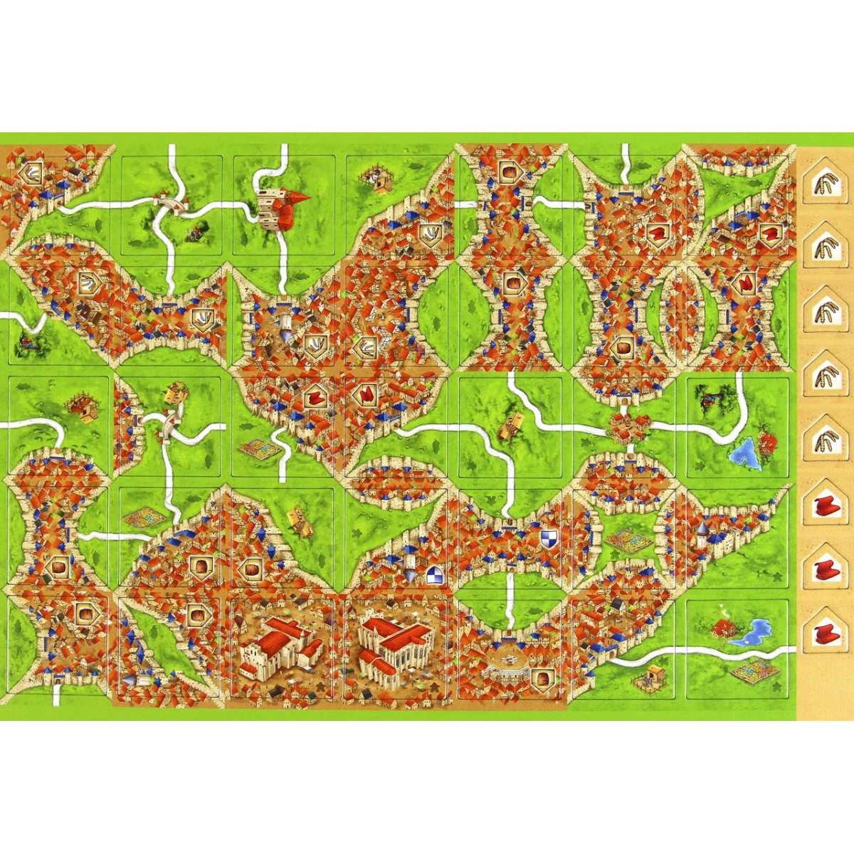 Ключовий стратегічний момент гри — це час, коли гравець вирішує, “куда ставити новий квадрат землі“. Гравець вибирає, що для нього вигідніше, адже один квадрат може дати кілька варіантів розміщення з різними наслідками. Продовжувати свій об“єкт або перешкодити супротивнику завершити його монастир/місто/доріжжя? Розсідати підступним ходом одного суперника або роззадорити своїми успіхами всіх?