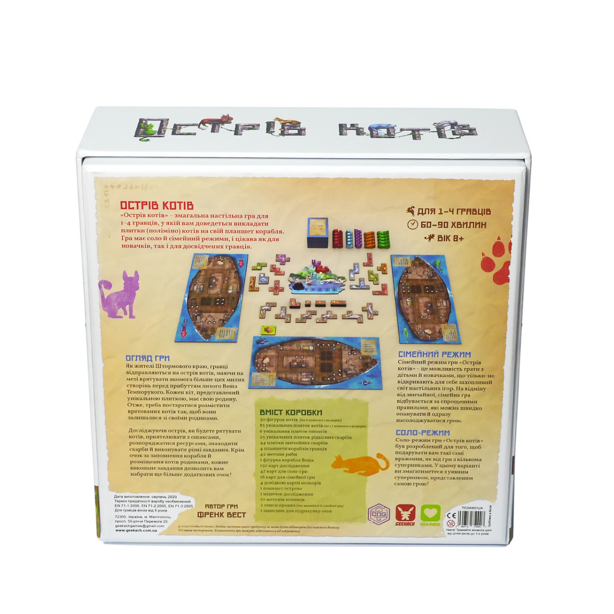 Гра “Острів кішок“ розроблена так, щоб кожна партія була унікальною. Здійснюйте відкриття, подружіться з осаксами, виконуйте особисті цілі, заповнюйте каюти, ловіть щурів і врятуйте якомога більше кішок!