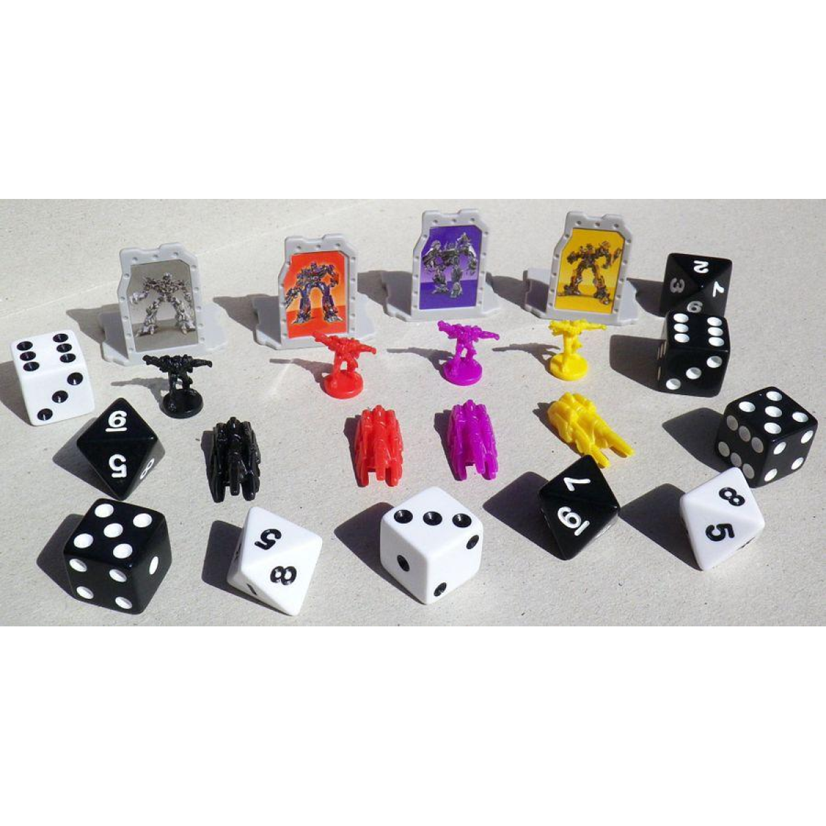 Битви, які ведуться на Кібертроні, схожі на звичайні РИСК-бітви, що відбуваються на Землі, але з однією помітною відмінністю. Чорні кубики, які кидає гравець, використовуються для атаки, а білі — для захисту. Атакувальний гравець кидає стільки ж кубиків, скільки він використовує для атаки роботів. Позбавляє того ж самого. Гравець із найбільшим киском одного кубика виграє битву. Щодо програючого у битві, то він або вона видаляє переможеного робота та кладе його на так звану «скидку», зону поруч з ігровим полем, де роботів більше не можна використовувати в битвах.