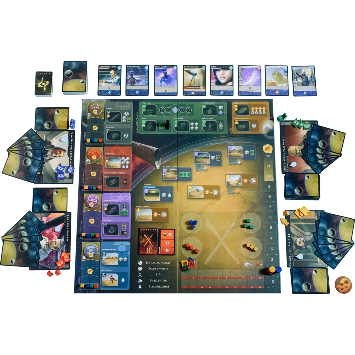 Відкривається верхня карта з колоди конфліктів. Гравці добирають по 5 карт зі своїх колод. Якщо карт у колоді бракує, потрібно сформувати нову колоду, перетасувавши карти зі скидання.