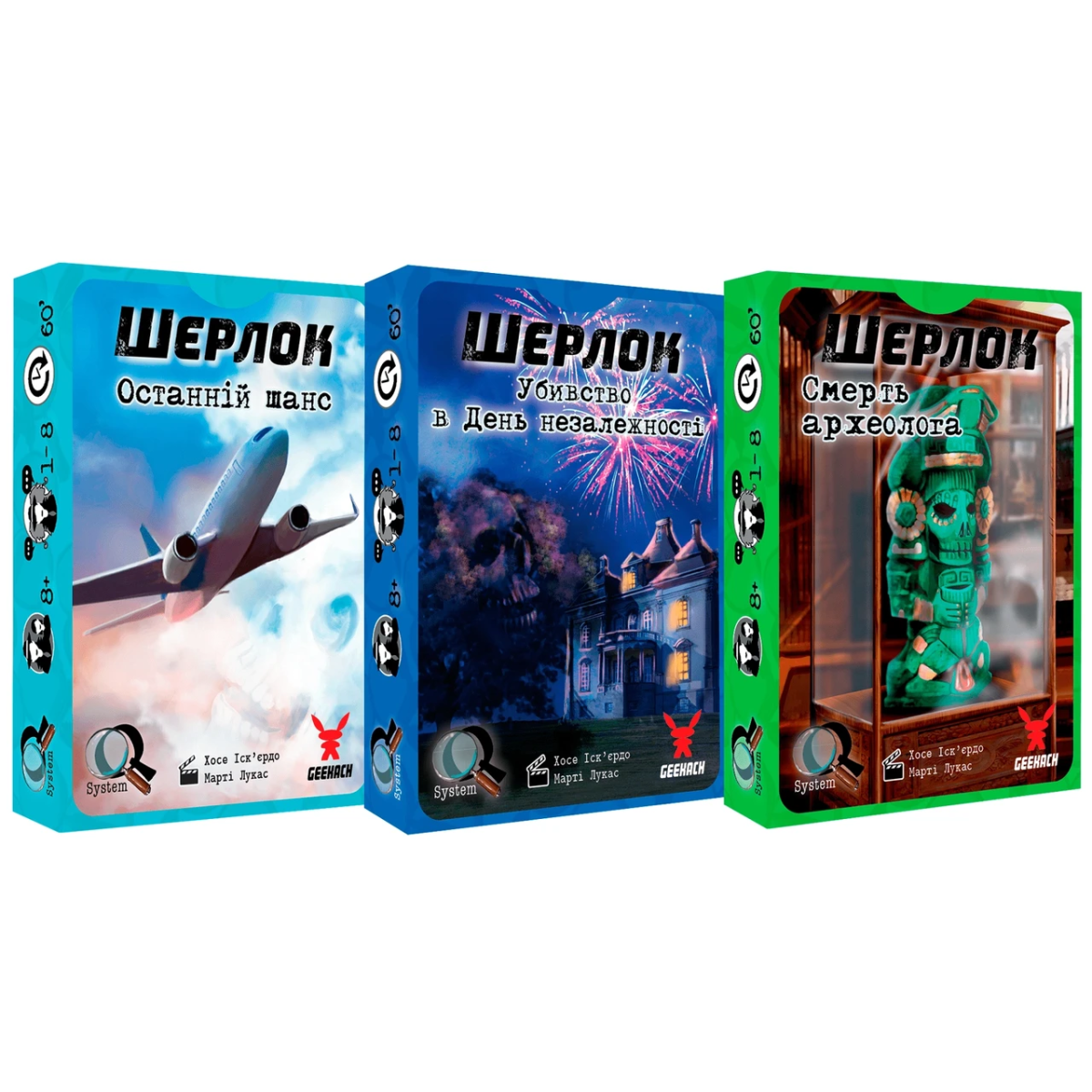 “Sherlock“ (також відома як “Елементарно“) — популярна серія швидких детективних кооперативів для 1-8 гравців. 2019 року ця гра стала номінантом престижного конкурсу “Spiel des Jahres“ (Гра року в Німеччині). У кожній коробочці гравців чекає окрема справа. Це цікавий детективний філер, який можна розслідувати соло, з друзями або членами сім“ї.