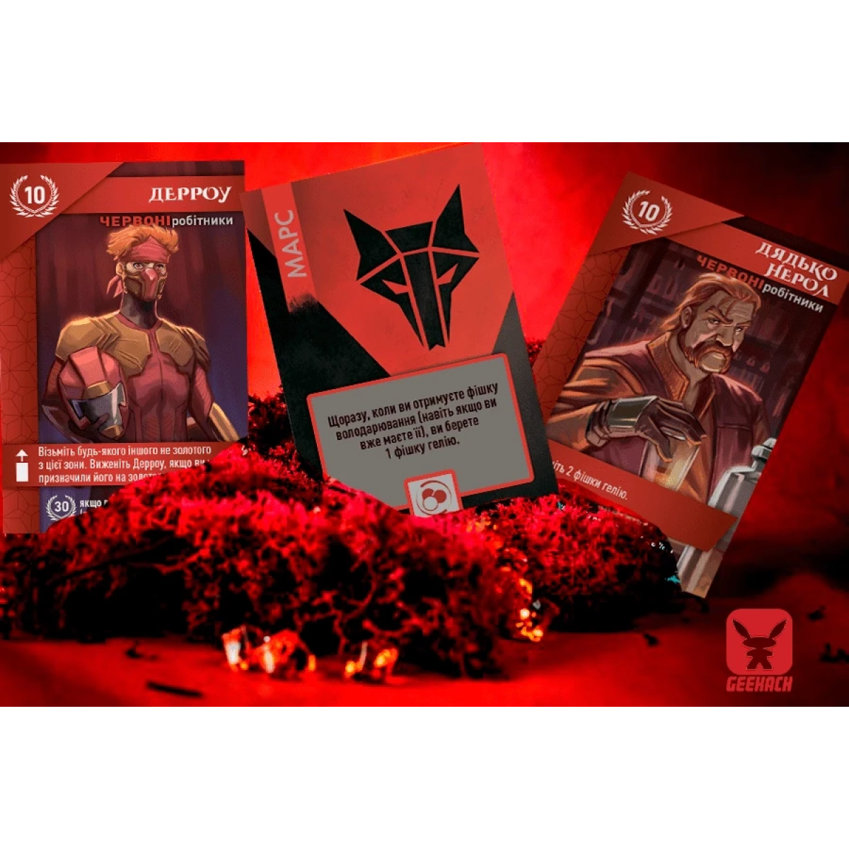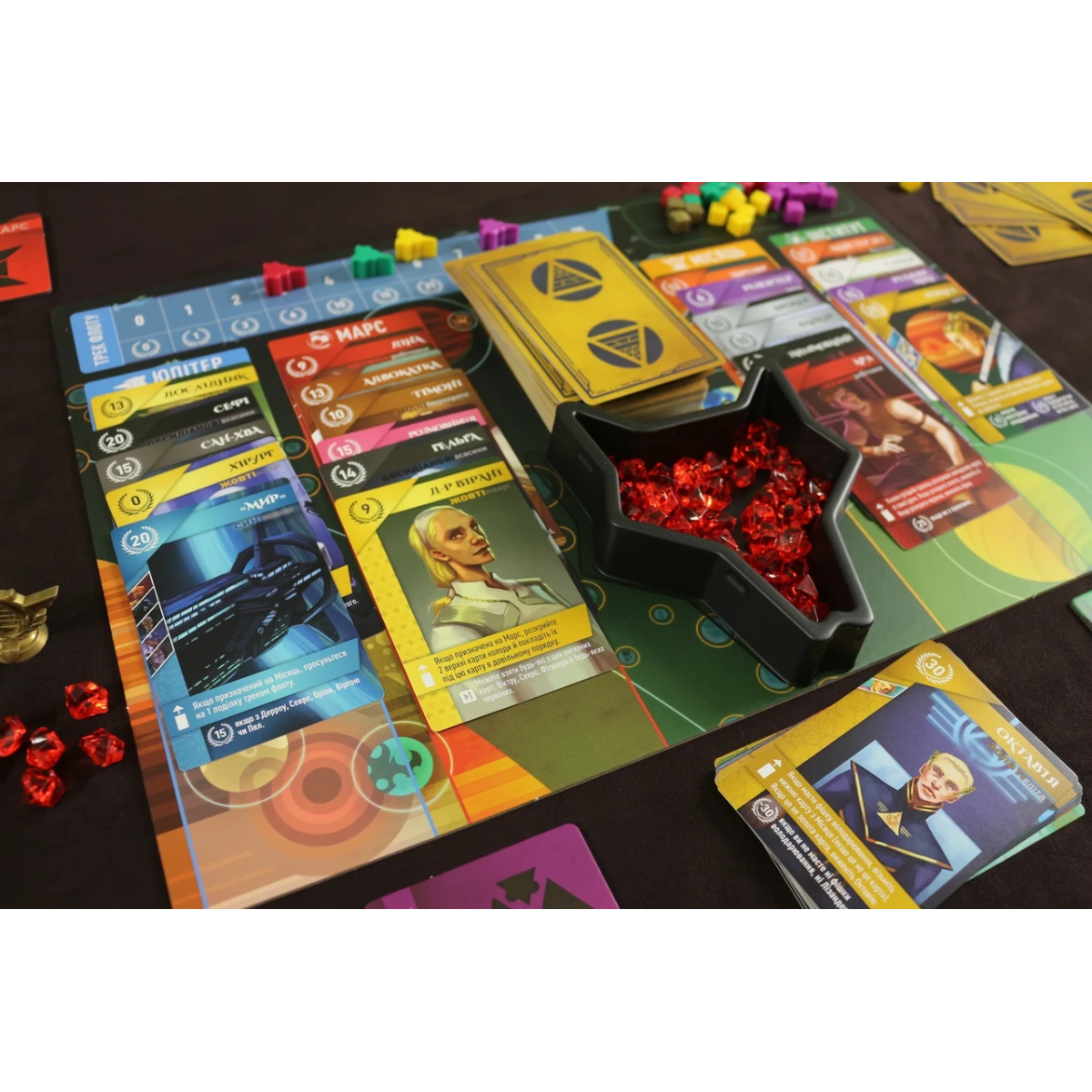 Крім карт персонажів, ви будете оперувати ресурсами запасу гелію-3 і впливом у вчилищі. Їх можна використовувати для застосування особливих властивостей персонажів або отримати за них переможні очки наприкінці партії.