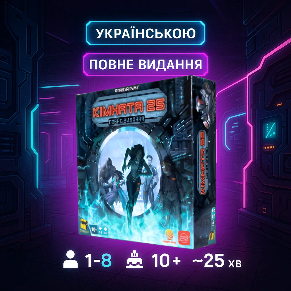 Детективно-психологічна гра про боротьбу за виживання в кубічному лабіринті. Настільна гра «Room 25» вийшла у світ 2013 року. Гра ґрунтується на фантастичному хорор-трилері «Куб» («Cube») і фільмах, які продовжують цю серію. У 2013-14 роках «Room 25» ставали номінальним конкурсом «Gioco dell“Anno», «Tric Trac» і «Juego del Año». «Room 25 Ultimate» — розширене видання, що вийшов 2016 року. Воно містить базову гру та перше доповнення.