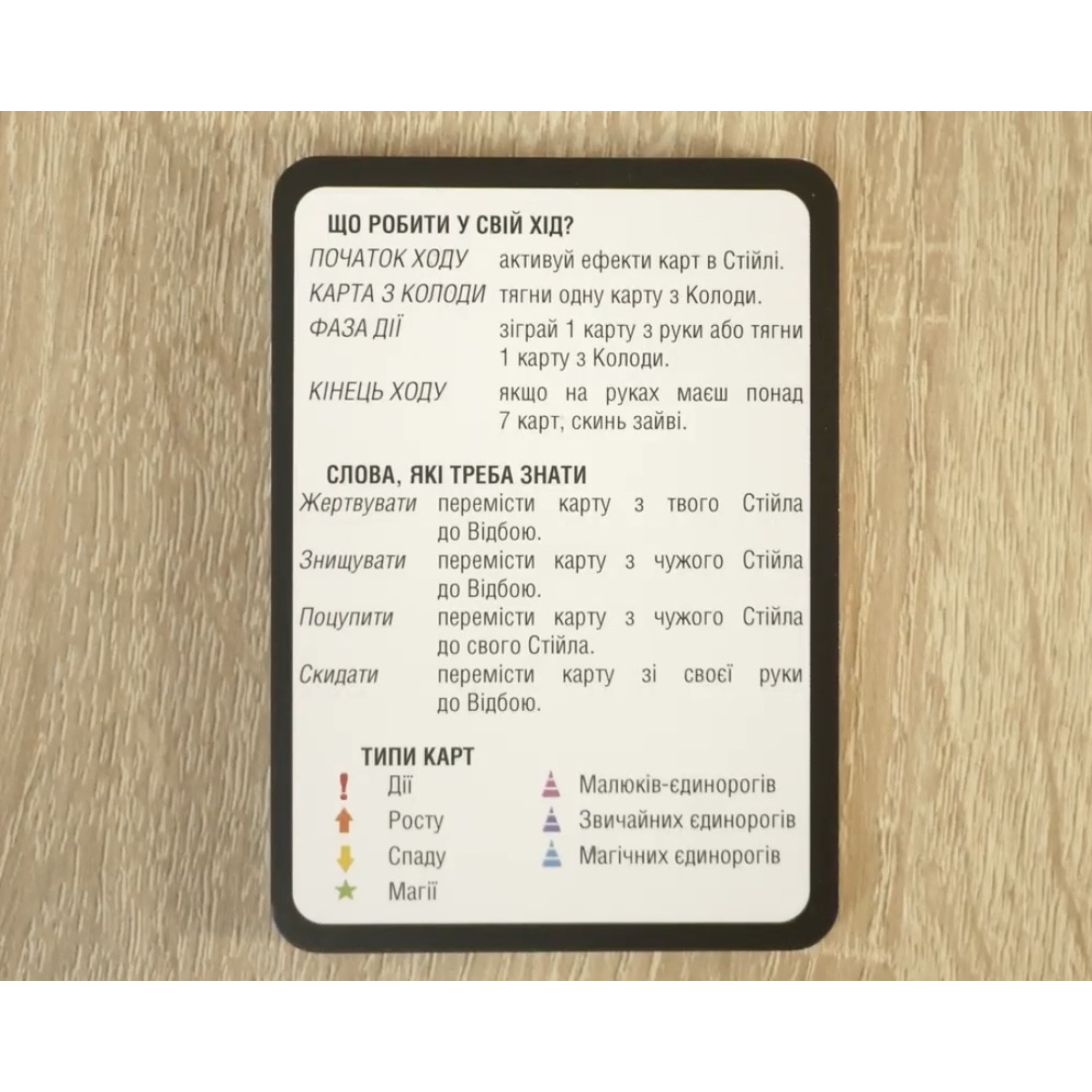 Unstable Unicorns гра - це дуже цікавий філлер з механіками збору сетів («Set Collection») і «ось тобі, маєш!» («Take That»). Гра стане хітом будь-якої вечірки і гарантовано сподобається всім учасникам, незалежно від їх ставлення до єдинорогів.