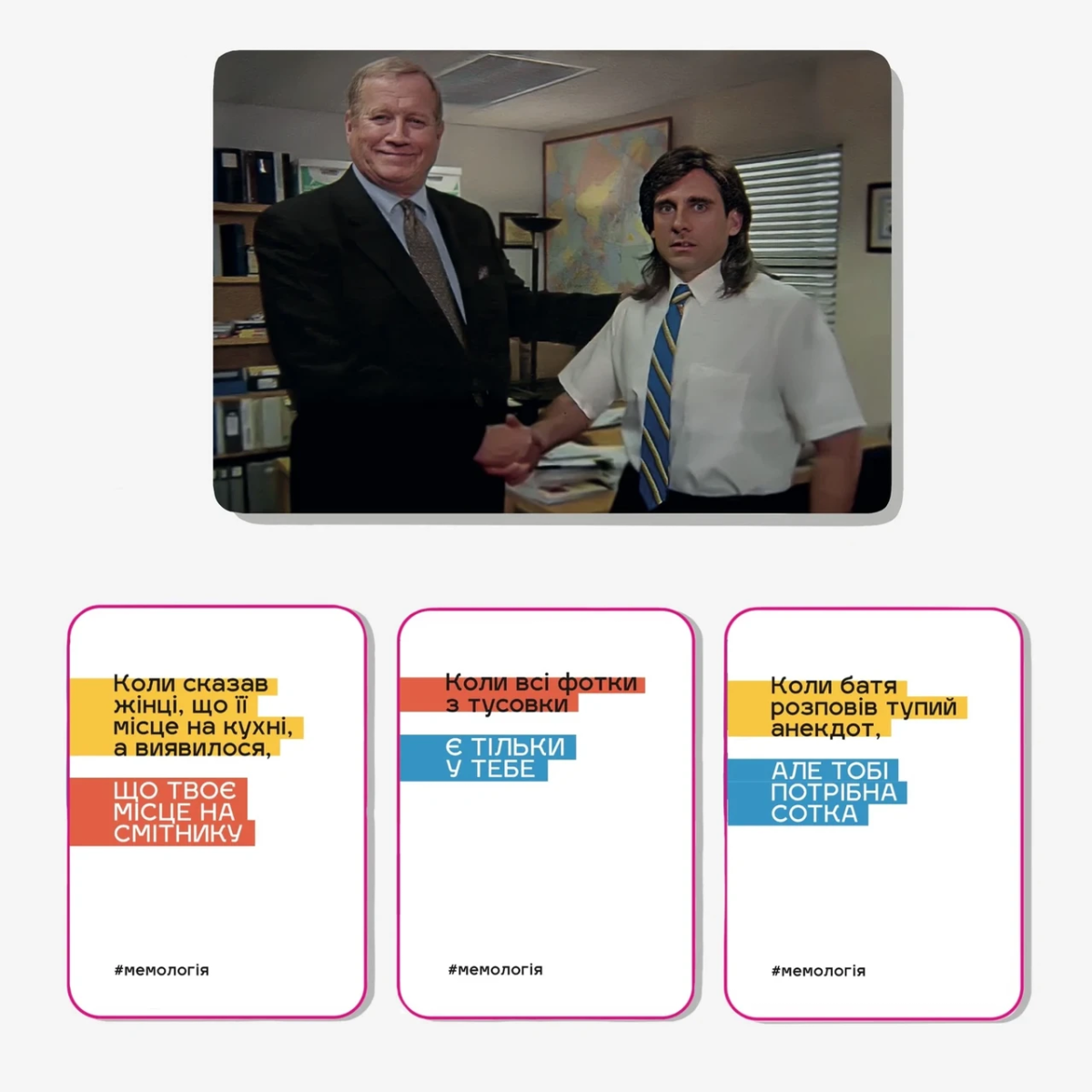 У грі представлені найсмішніші та найактуальніші меми. Грати можуть гравці від 17 років, які розуміють такий гумор і багато часу проводять в Інтернеті. Завдяки простим правилам, смішним картинкам із відомими персонажами та гумористичним підписам гра стала хітом мережі! Це незамінна розвага в компанії! Гарантовано поліпшує настрій!
