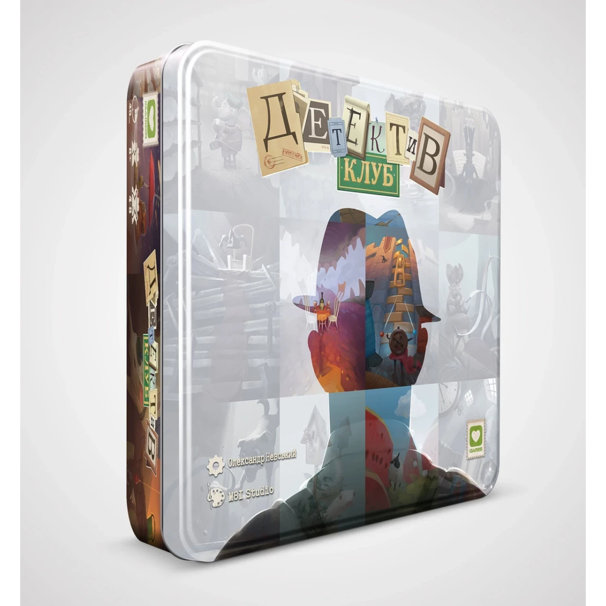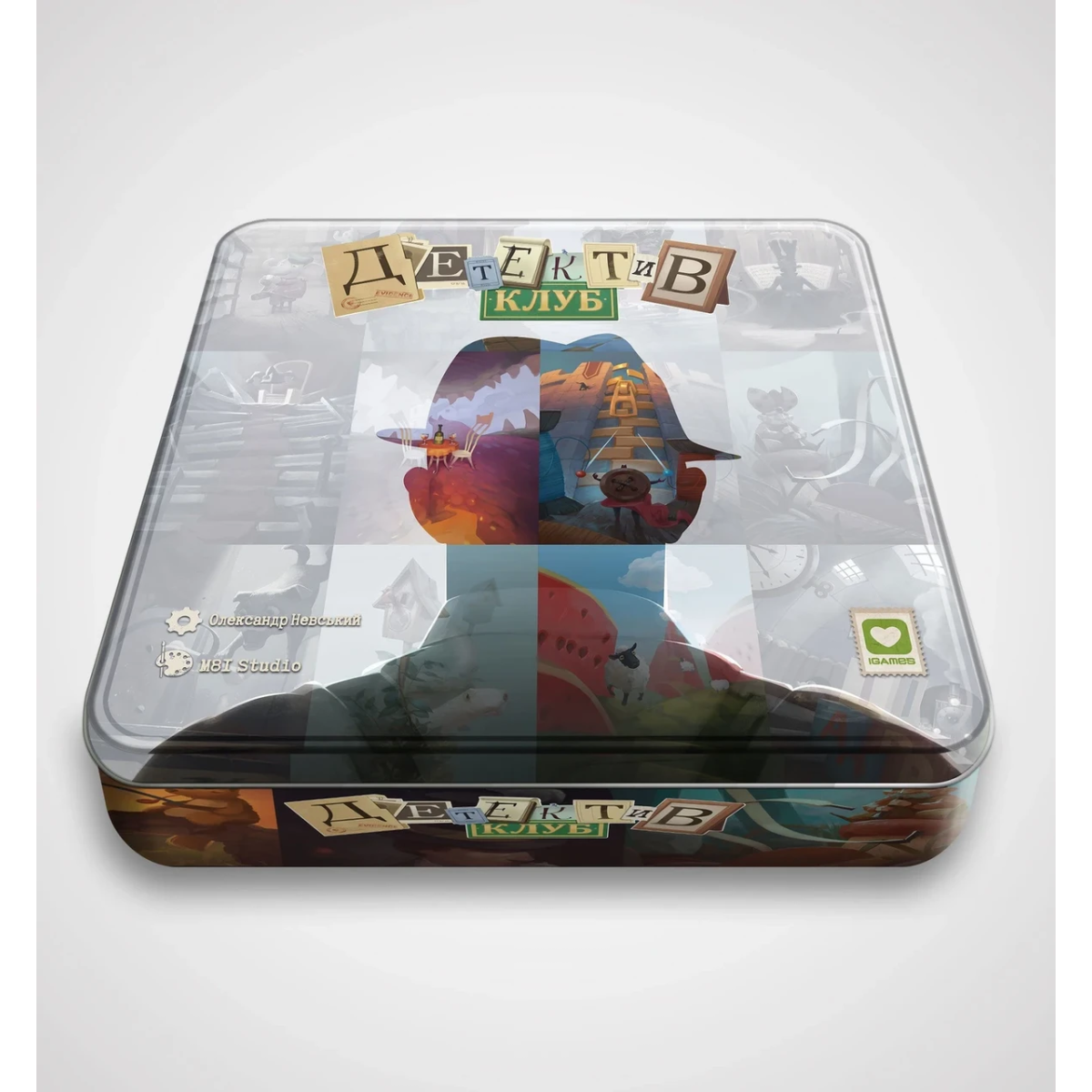 «Детектив-клуб» може похвалитися простими правилами, захопливим геймплеєм і якісними компонентами. Усередині подарункової бляшаної коробки ви знайдете органайзер з плашками гравців, блокнотами, жетонами переможних очок, фішкамисувати у формі луп, а також товстою колодою величезних карт із чудовими сюрреалістичними ілюстраціями.
