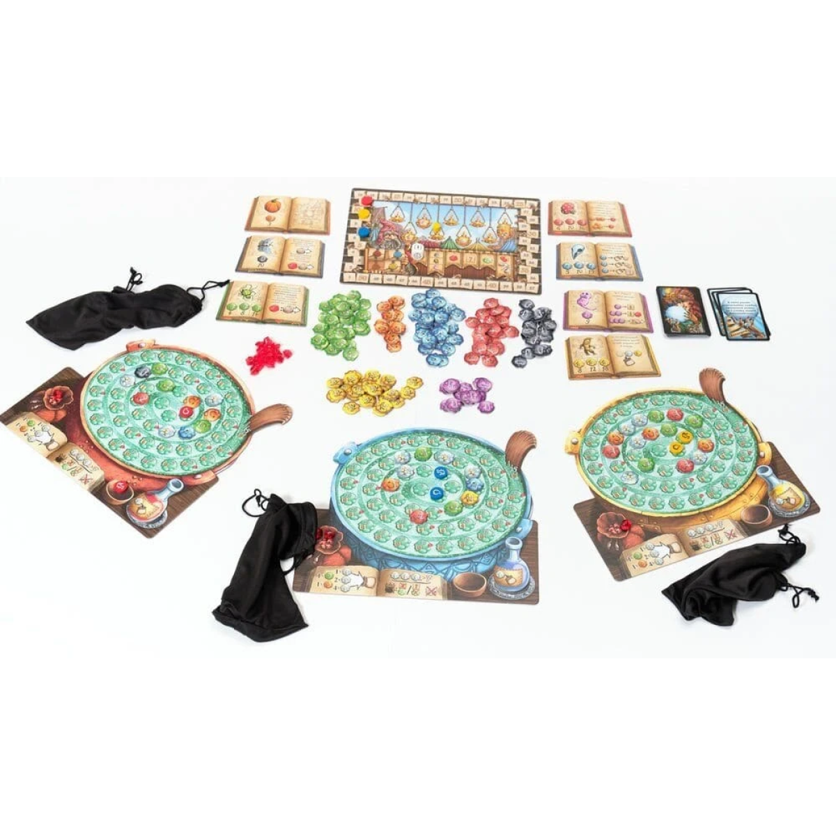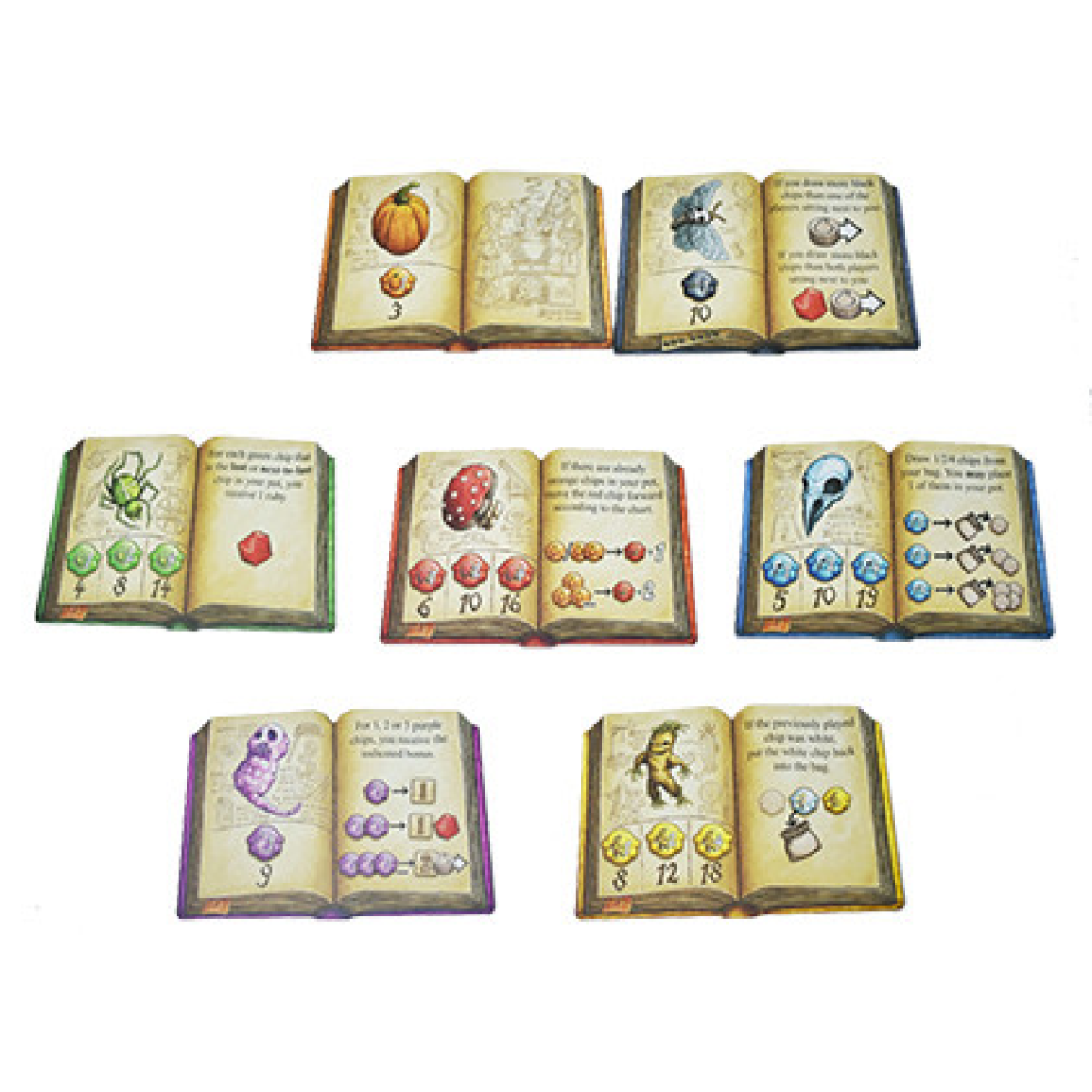 Гравці з чорними, зеленими і ліловими жетонами інгредієнтів в котлі застосовують їх властивості та отримують нагороди згідно книжечок.