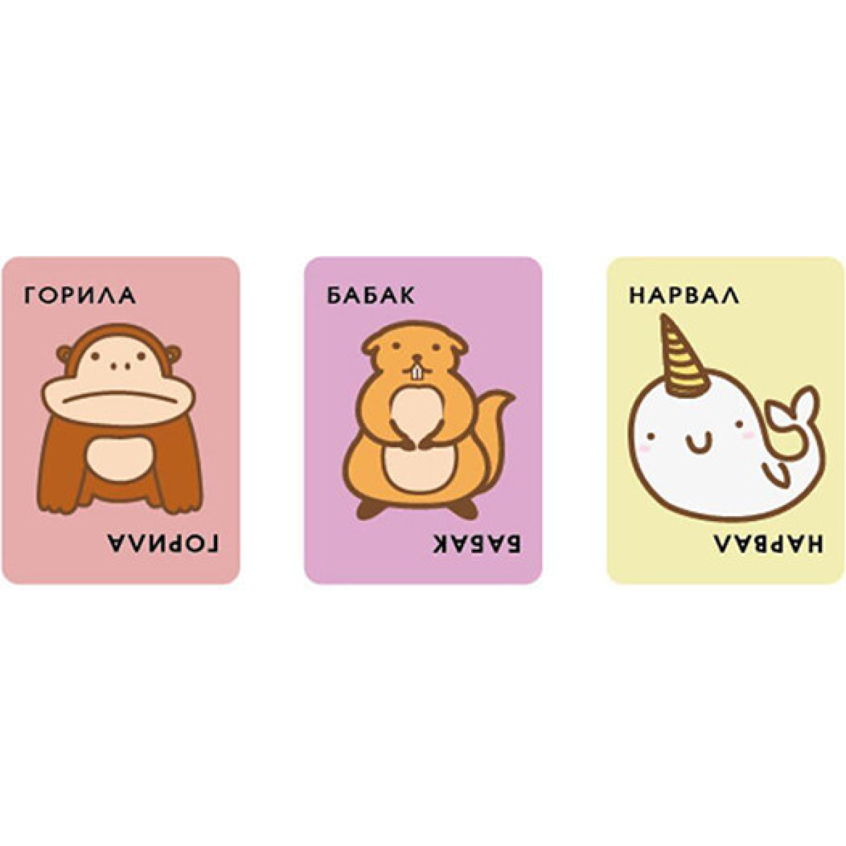 Наприклад, якщо виклали карту Горили, то кожен гравець зобов“язаний бити себе кулаками в груди як Тарзан, виявляючи свою повагу до мешканцями джунглів. Ну, а після цього можна і потиснути лапу — накрити карту долонею.