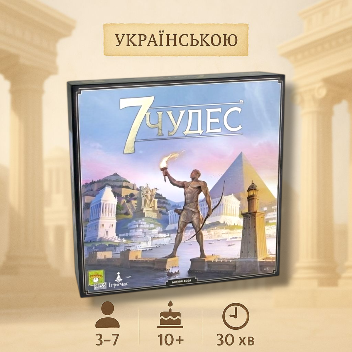 Ми чесно вірили, що чудес не буває і що все геніальне вже придумано, а шуміха, піднята навколо 7 Wonders, не більш ніж вдалий маркетинговий хід автора Антуана Баузи (Antoine Bauza) і його видавальників. І ми... помилилися. Ми вважали, що нас уже нічим не здивуєш, що ми навчилися та смакували від всього найкращого, що було створене в настільному всесвіті в останні роки, але тим приємнішим було усвідомлення, наскільки ми недооцінили цю гру.