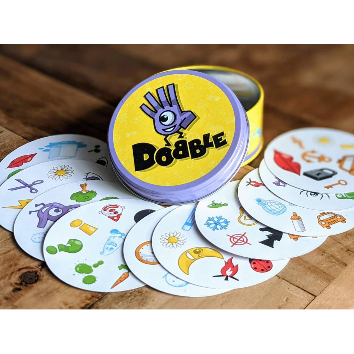 Доббль — це набір із п“яти різних ігор, схожих між собою, де необхідно шукати збіг зображень між вашою карткою й картками інших гравців, або з карткою загальної колоди.