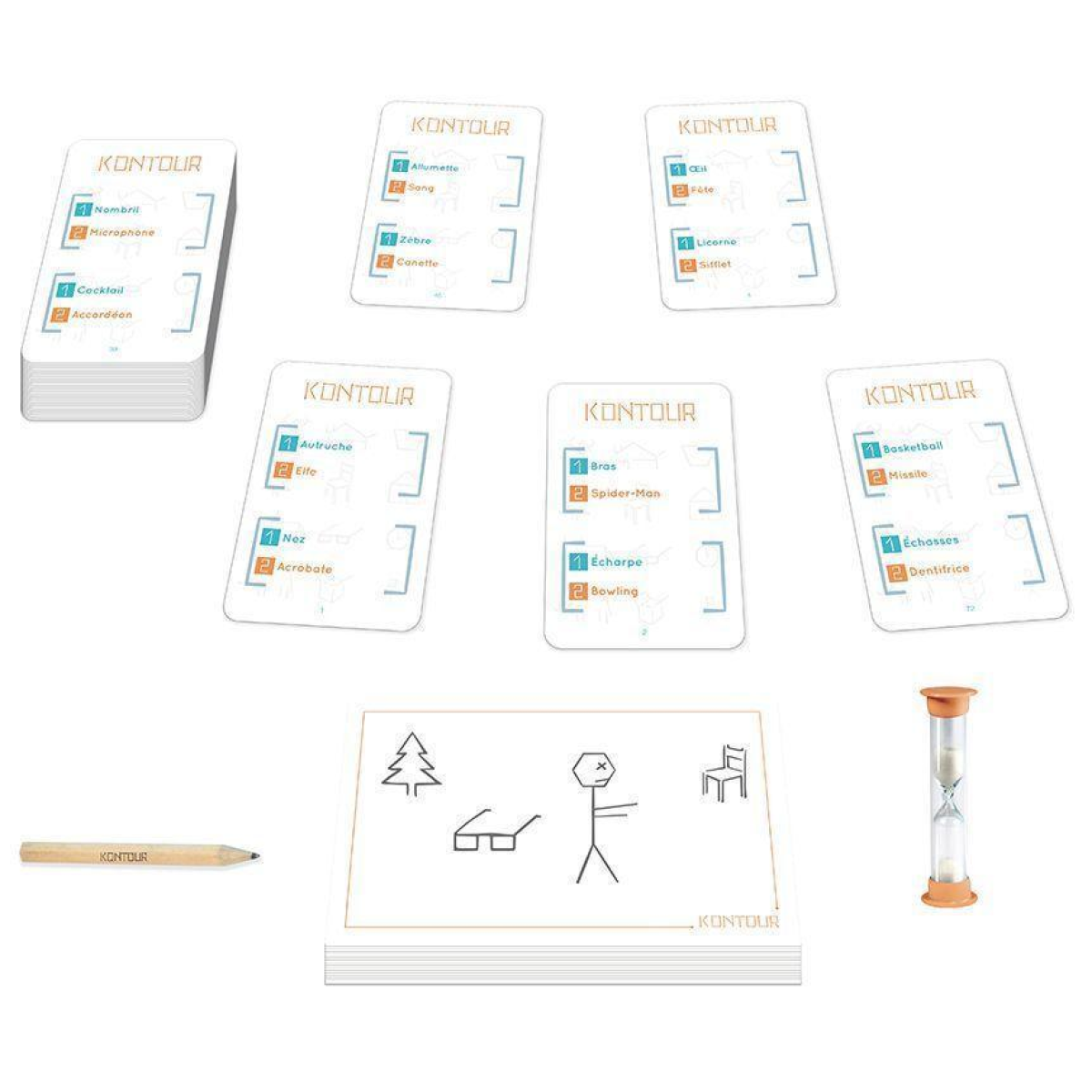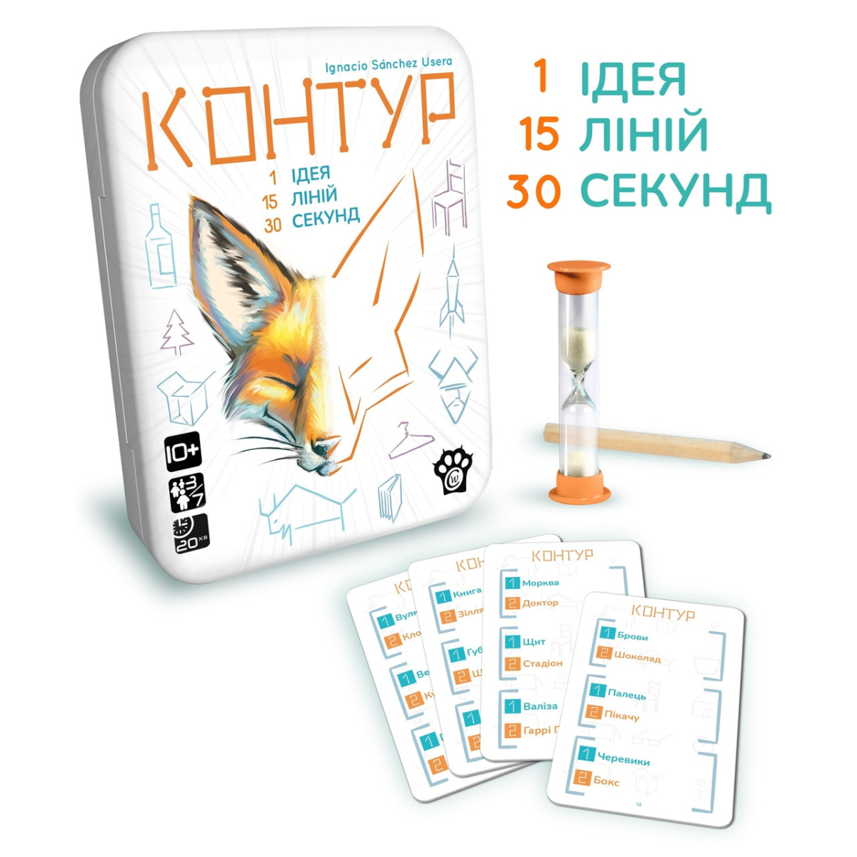 Швидка паті-гра на пояснення слів за допомогою малювання прямих ліній. Настільна гра «Kontour» була розроблена у 2018 році. Це дуже цікавий творчий філер, який підійде і для сімейних посиденьок, і для дружньої вечірки.