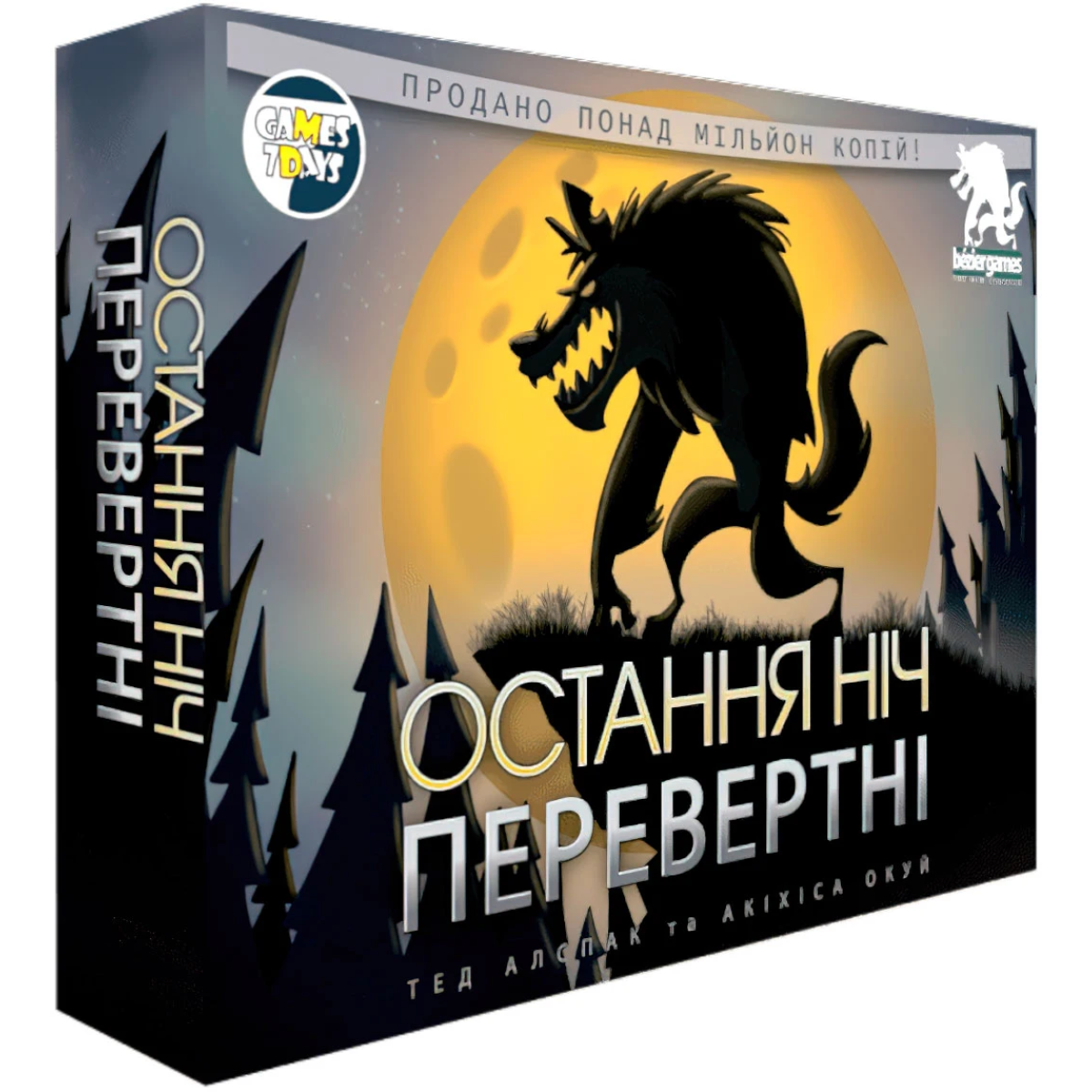 Остання ніч: Перевертні (One Night Ultimate Werewolf) — настільна гра для компанії, що ґрунтується на правилах Мафії. Але ось тільки на відміну від неї цей паті-гейм чудово масштабується й ідеально підходить, коли за столом від 3 до 10 осіб.