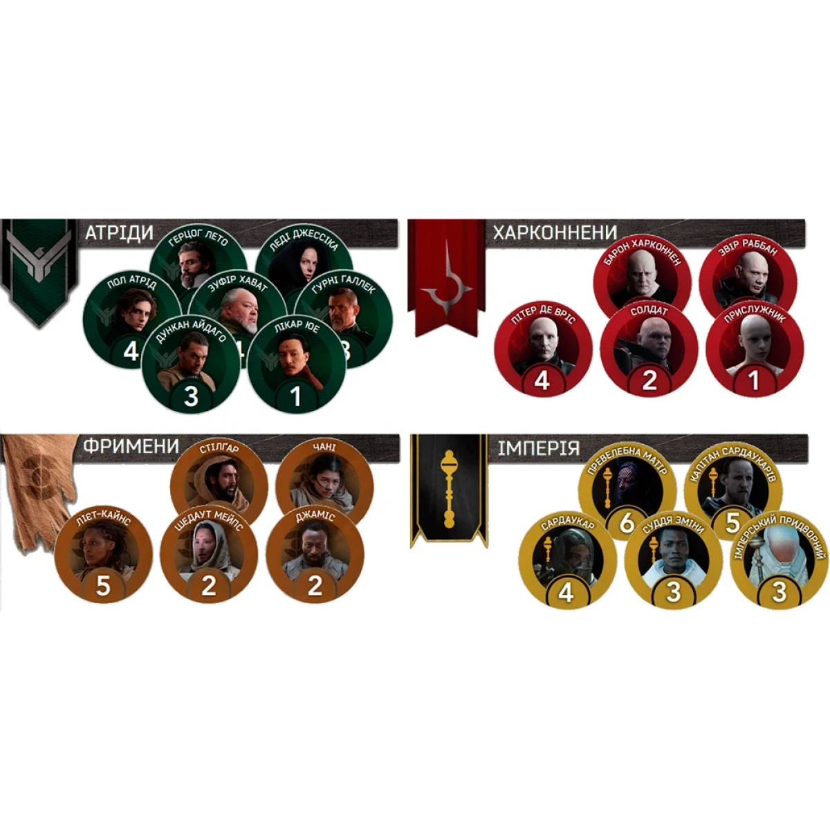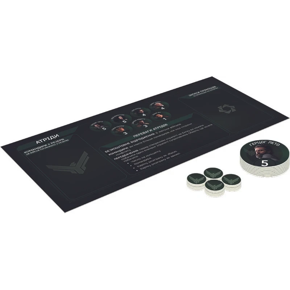 Перед вами доволі швидка асиметрична гра, що базується на механіці контролю територій. Кожному з учасників випаде встати на чолі однієї з могутніх фракцій: справедливого й помірного дому Атрідів, жорстокого й безжального дому Харконненів, нерозсудливого й жадібного Імперіуму, вільних і нескорених Фрименів.