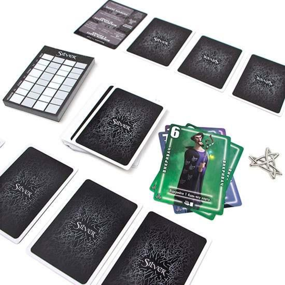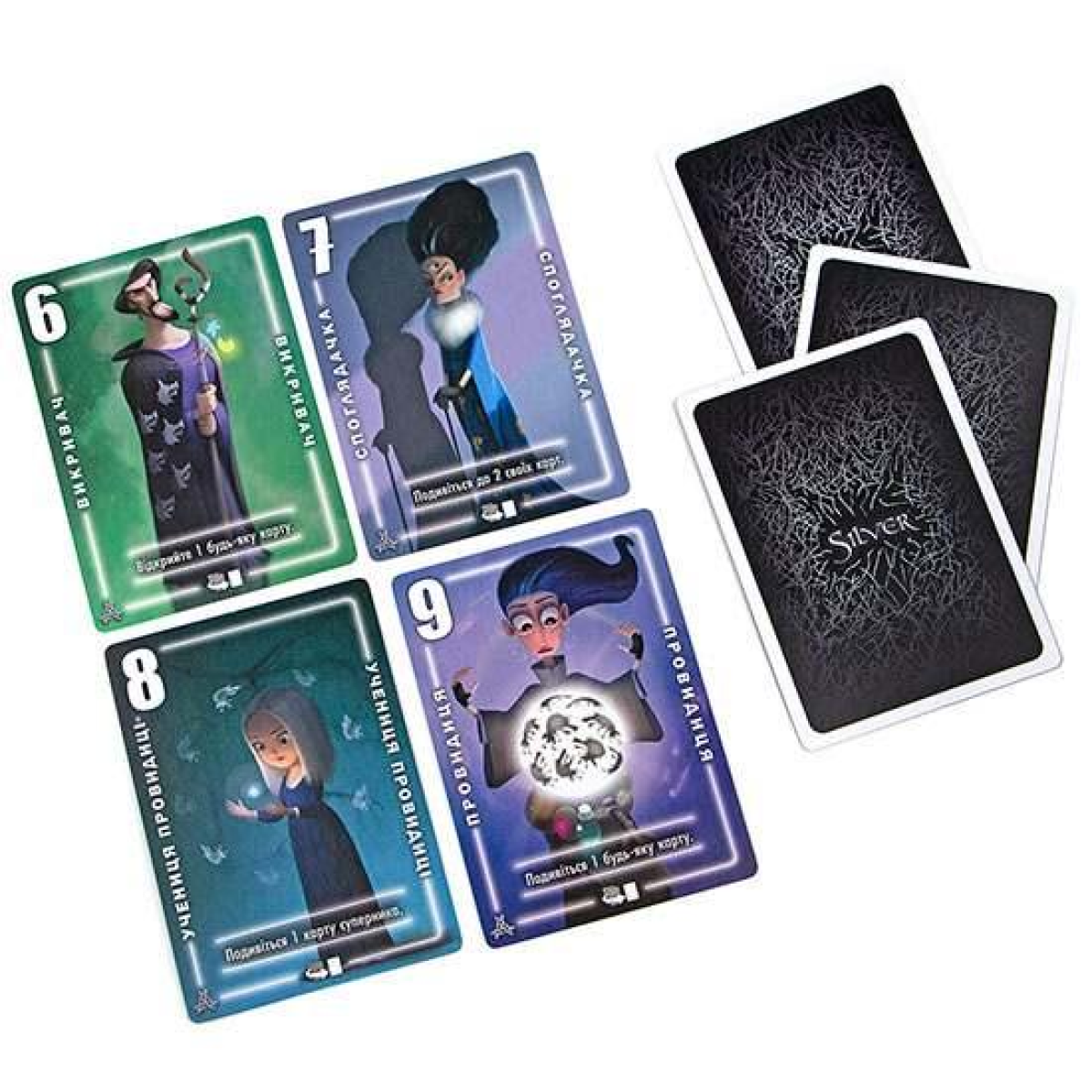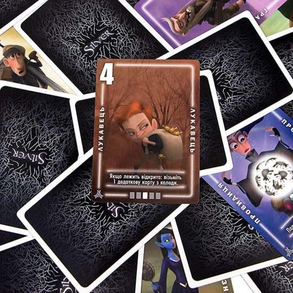 Silver — це швидка та захоплююча традиційна карткова гра з твістом перевертня! Кожен починає гру з п’ятьма закритими картами, кожен може побачити дві карти на свій вибір. Карти пронумеровані від 0 до 13, причому число показує, скільки перевертнів приваблює персонаж на цій карті, і кожен символ (число) має різну спеціальну силу.