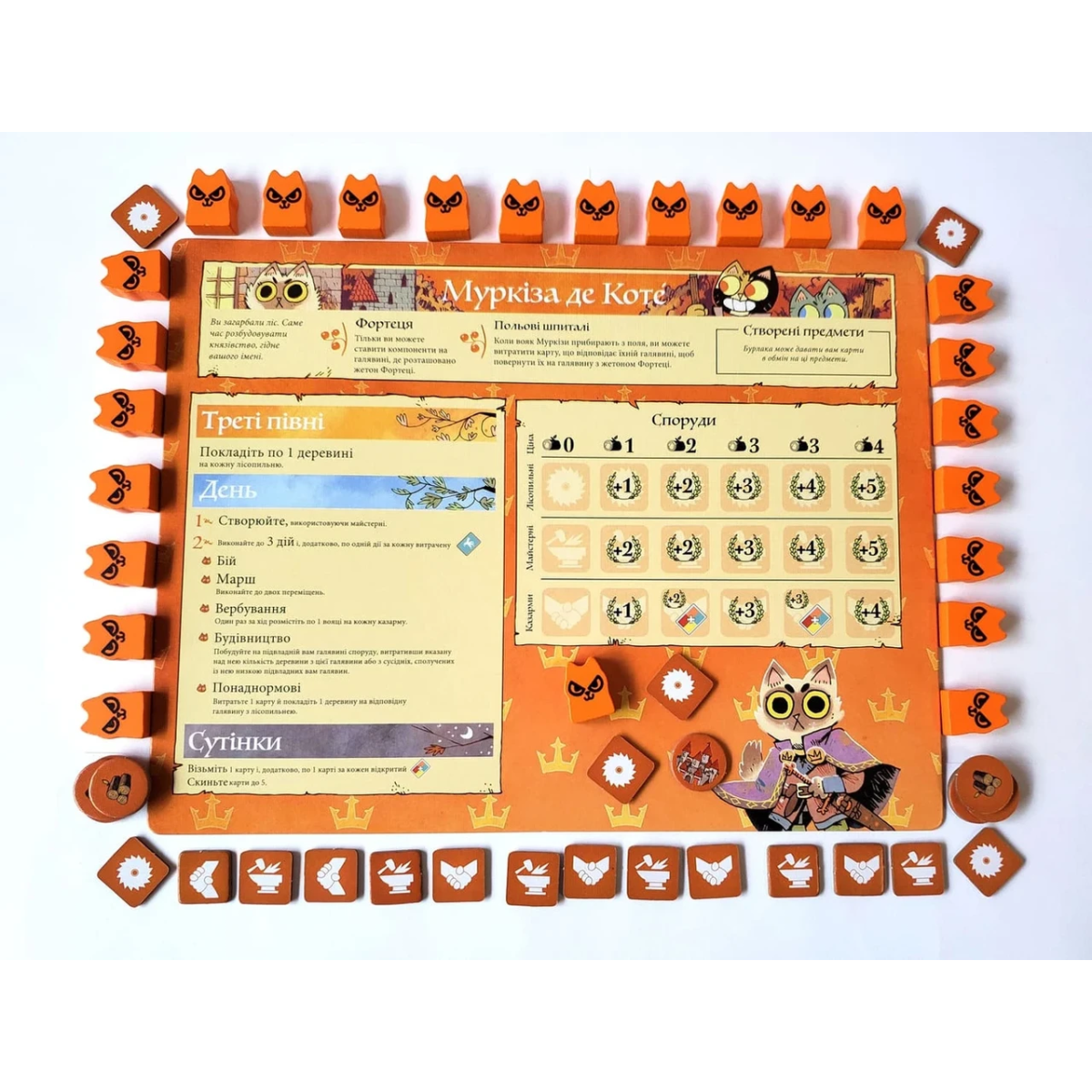 – Муркіза де Коте намагається збільшити свій вплив в лісі споруджуючи казарми, майстерні та пилорами. За це вона отримує переможні бали. Її війська присутні майже на всіх лісових галявинах, а упродовж фази дня Муркіза виконує до трьох дій.