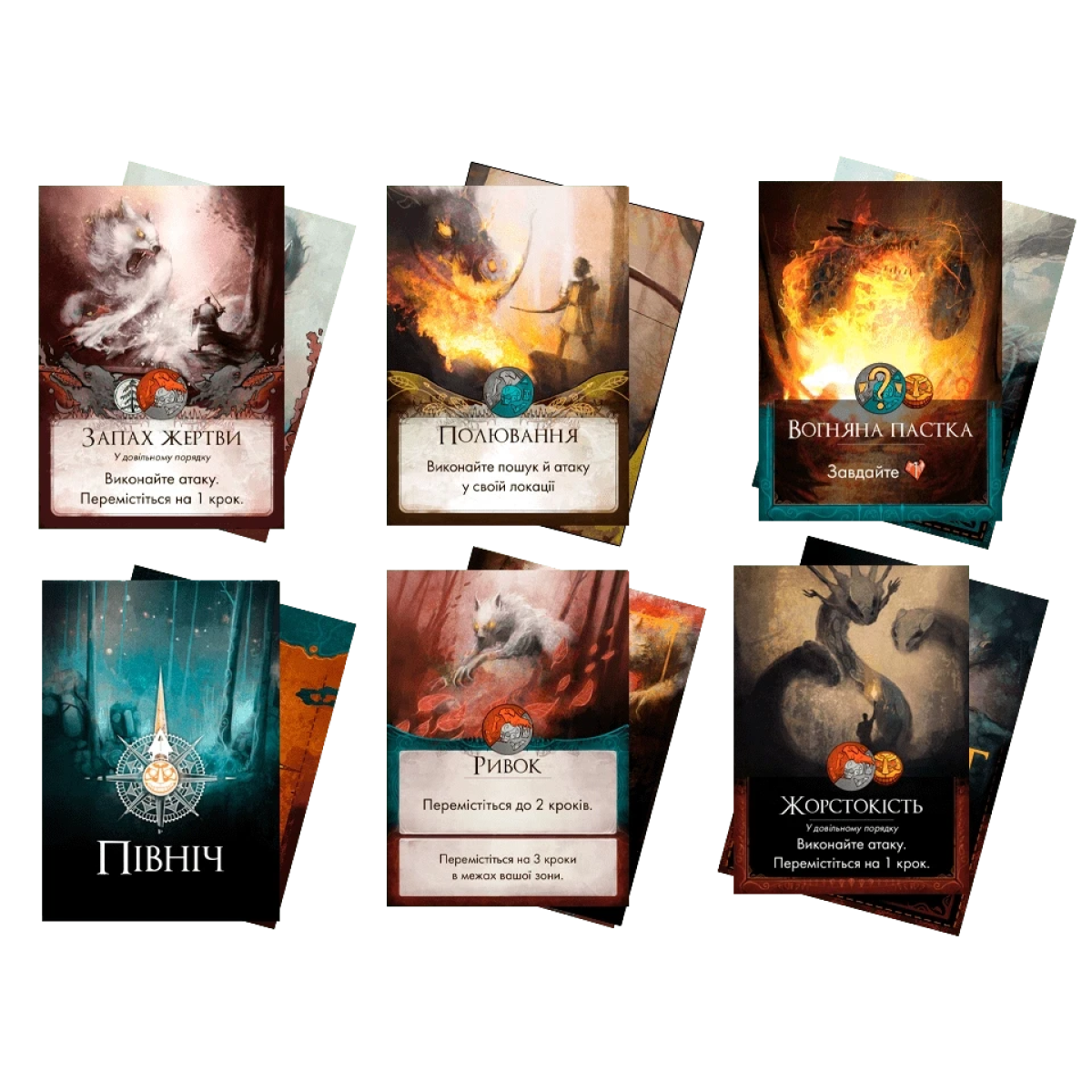 Зіграти карти. Можна зіграти 1 карту з оранжевим символом і/або 1 карту з блакитним символом. Для розіграшу деяких карт вивертів Звіра або предметів треба витратити досвід. Щоб зіграти деякі карти здібностей, персонаж повинен перебувати в місцевості зазначеного типу. Якщо зіграна карта містить слово «зона», ефекти цієї карти поширюються лише на ту зону, де перебуває персонаж у момент розіграшу карти.