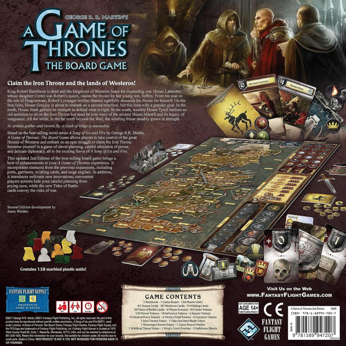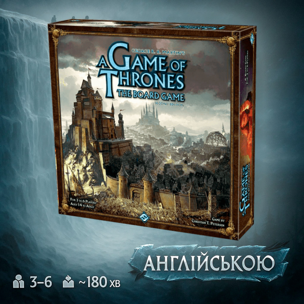Настільна гра «Гра Престолів (A Game of Thrones)» була видана за книгою відомого письменника і автора твору « Пісня льоду та полум“я» Джорджа Р.Р. Мартіна. Вона була випущена компанією Fantasy Flight Games в 2002 році слідом за своїм попередником, колекційною картковою грою. Обидва продукти вийшли під стать їх першоджерелу. На даний момент ми продаємо вже нове видання, яке було видано в 2011 році.