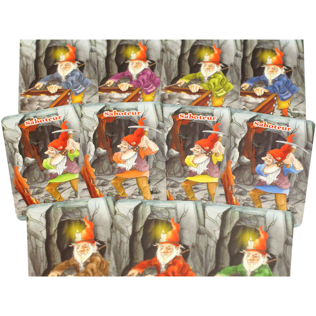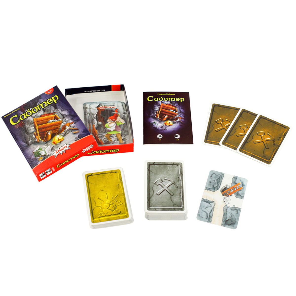 Saboteur - неймовірно популярна гра для великої компанії. Учасники перевтіляться в гномів і будуть пошуком золотих злитків під землею. Залежно від отриманої ролі, одні прокладатимуть тунелі наввипередки, а інші всіляко заважатимуть їм, саботуючи процес.
