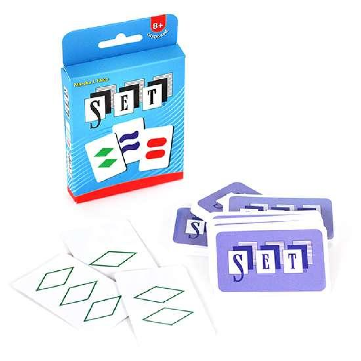 Настільна гра Сет (Set) – це карткова настільна гра для тренування уваги. На кожній карті в колоді зображені малюнки, які відрізняються по чотирьох ознаках: кількість фігур, заливка, форма і колір. Кожен сет чи набір з трьох карт, який належить відшукати гравцям повинен містити лише зображення повністю ідентичні чи навпаки повністю відмінні по кожній з ознак. Наприклад, якщо в наборі є зелена фігура, то дві інших повинні бути або зелені або бути червоною і синьою. Те саме стосується решти трьох ознак сету. Тобто в сеті не може бути двох малюнків з одною однаковою ознакою. Звучить дуже просто, та на практиці часом виходить дуже кумедно і цікаво. Часом сети знаходяться самі собою, а часом доводиться довго ламати голову над пошуком чергового набору. Щоб перемогти в грі Сет, ви повинні бути не просто уважними, а гранично уважними на максимальному рівні концентрації.