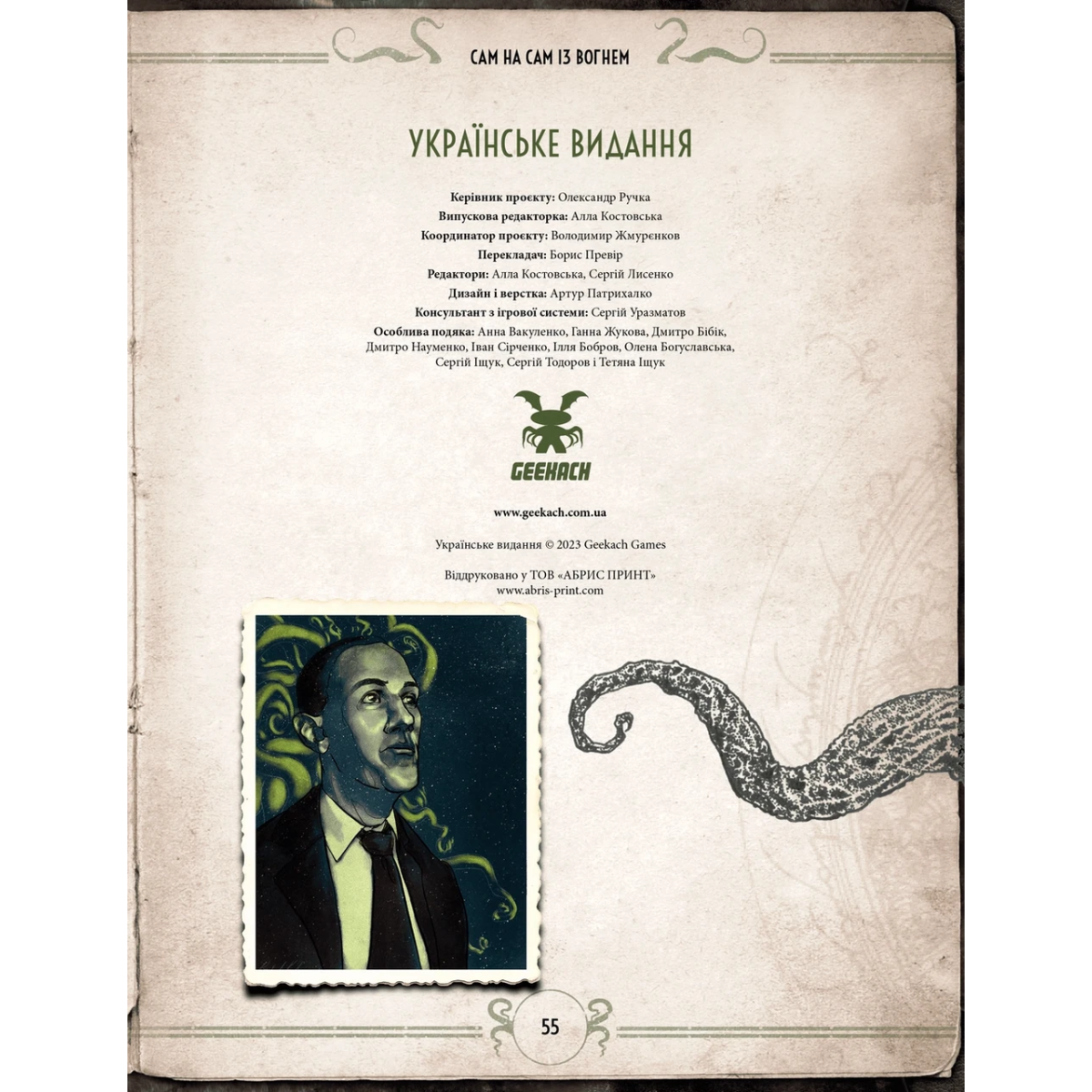 «Call of Cthulhu RPG» - одна з найвідоміших настільних рольових ігор у світі, розроблена в далекому 1981 році. Це рольова гра в жанрі горору й детективу за мотивами творів великого й жахливого Г.Ф. Лавкрафта. Від моменту створення ця настільно-рольова система отримала декілька виправлень та доповнень правил, що також відомі як «редакції». Перед вами стартовий набір сьомої та найсвіжішої редакції, що містить усі можливі виправлення.