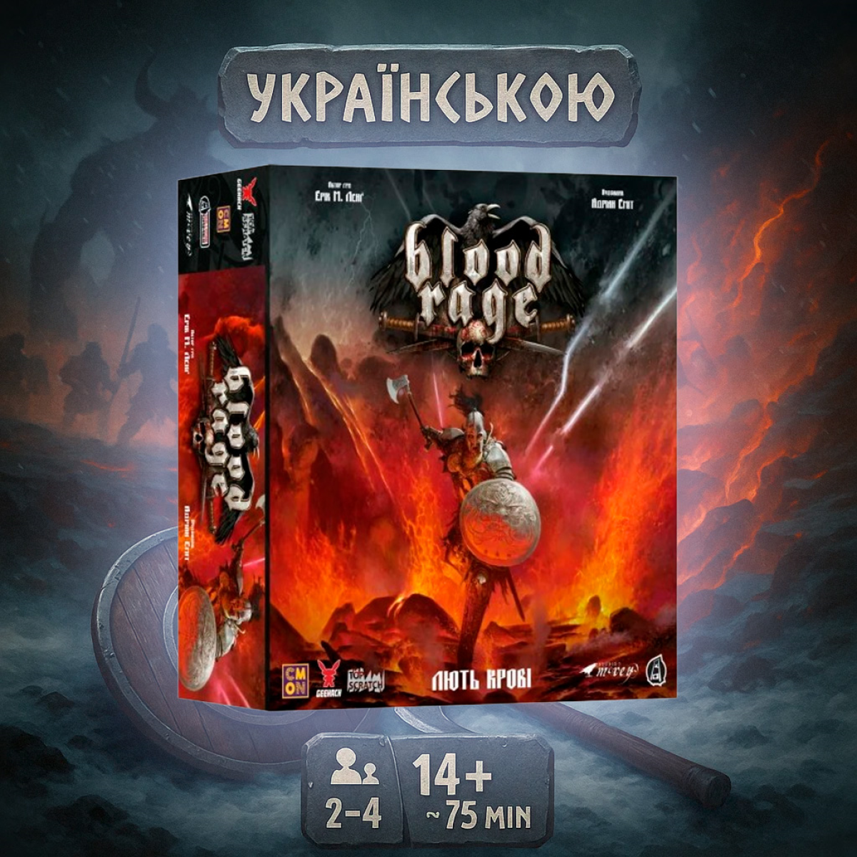 Blood Rage (Кров та лють) – це велика, гарна, епічна настільна гра про останні дні життя вікінгів. Раґнарьок знищує навколишній світ. Із розломів гірських порід витікає лава, землю засипають метеорити, смертоносні лавини сходять з вершин, а води навколишніх морів невпинно підіймаються, затоплюючи усе навкруги. Кінець зовсім поруч і вікінги це відчувають. Але перш ніж світ зникне, чотири клани зійдуться в кривавій битві. Вони будуть грабувати провінції, битися, виконувати квести, скликати під свої стяги легендарних героїв та потойбічних чудовиськ. Усе заради того, щоб з честю та славою вирушити у Вальгаллу.