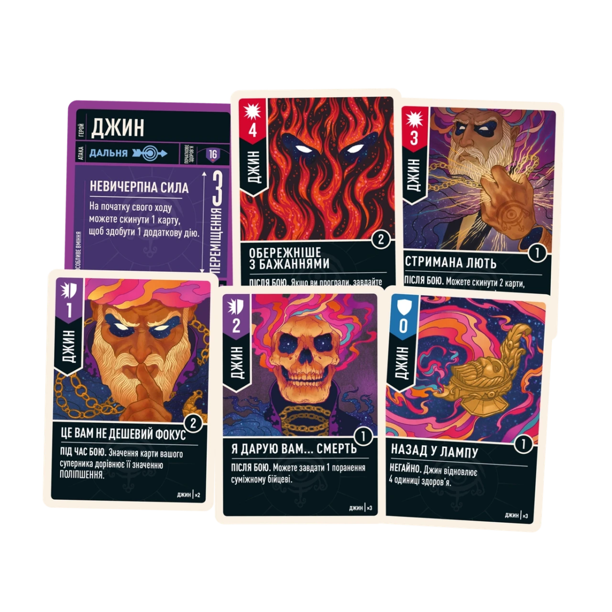 На початку ходу Джина можете скинути 1 карту, щоб здобути 1 додаткову дію.