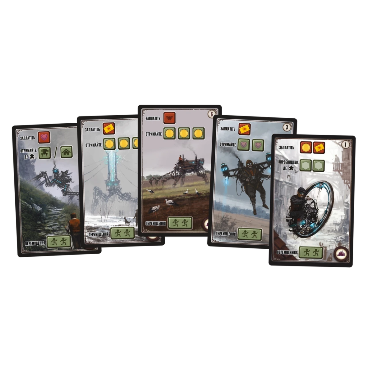 переміщення, що дозволяє пересунути певну кількість фігурок (робочі, мехи, герой) або отримати монети. Всі фігурки можуть переносити ресурси, мехи можуть перевозити робітників. Герой і мехи можуть переходити річку в певних місцях, якщо побудований мех, який знає броди. Гекси з тунелями вважаються сусідніми. Зайшовши на територію з жетоном пригоди, герой отримує карту пригоди і вибирає один із запропонованих варіантів розвитку подій. Коли герой або мех заходять на територію з бойовими юнітами супротивника, починається бій;