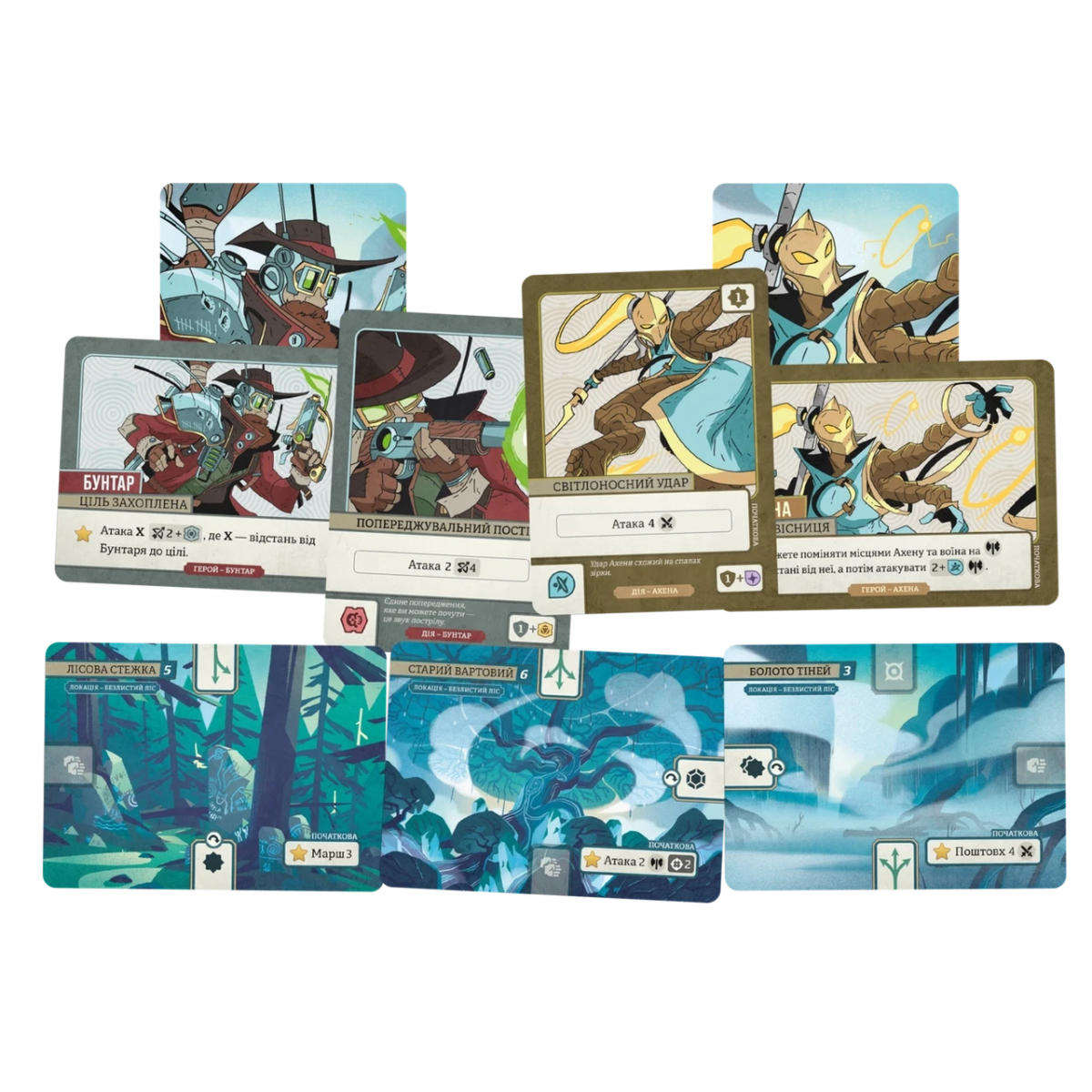 Набір карт Ахени (1 герой, 1 карта здоров“я, 4 карти дій)