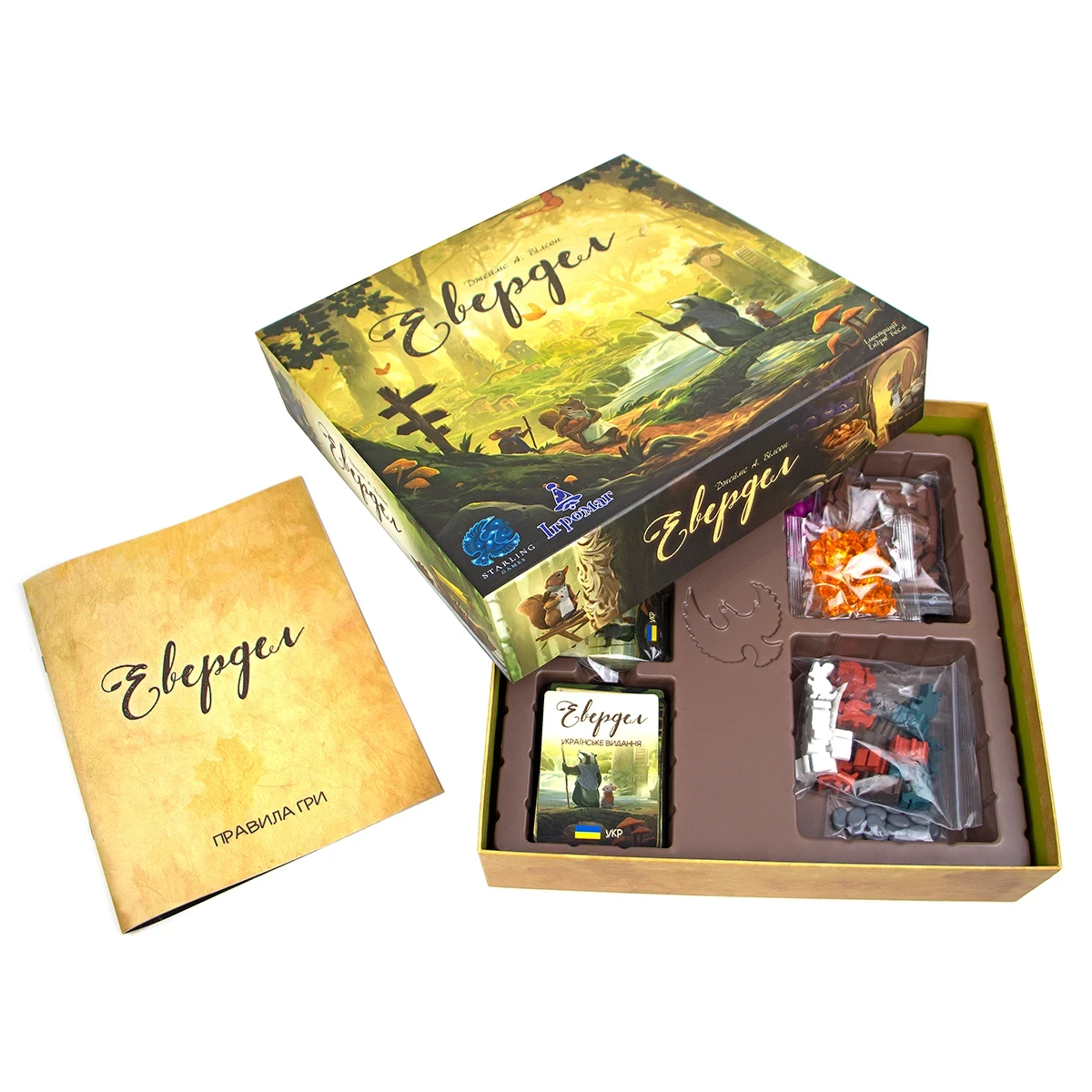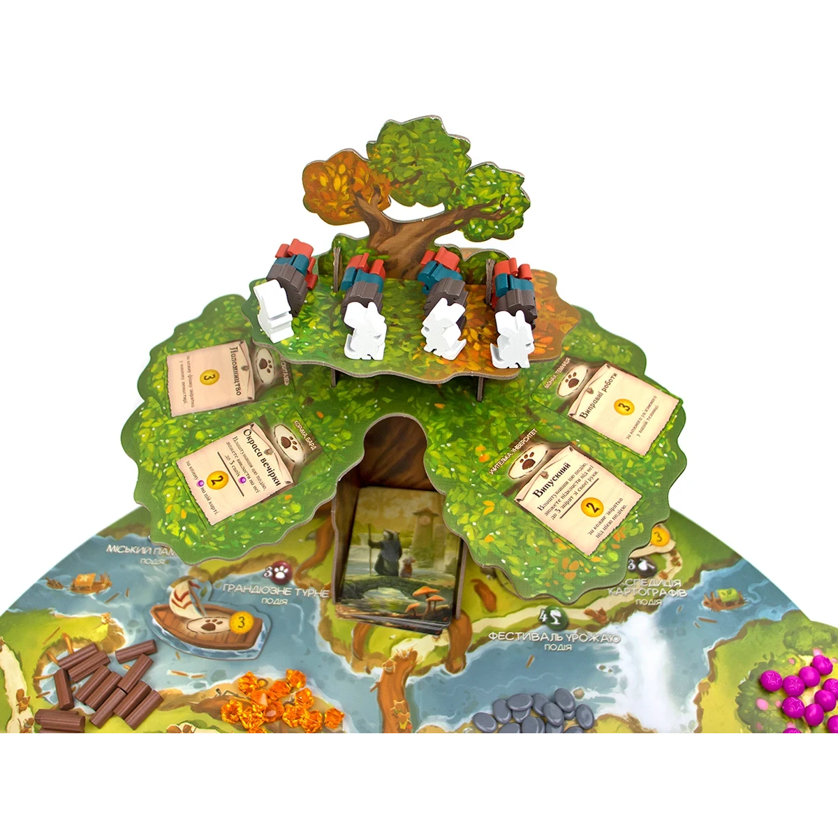 Неймовірно красиве євро про будівництво звірячої цивілізації під покровом Могутнього Вседрева. Це захоплива динамічна гра на будування карткового рушія та розміщення робітників зі зворушливими ілюстраціями та чудовими компонентами – звірятами-міплами, реалістичними ресурсами та величезним тривимірним деревом.