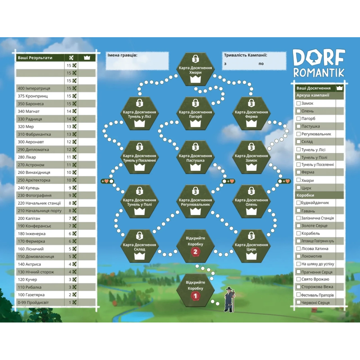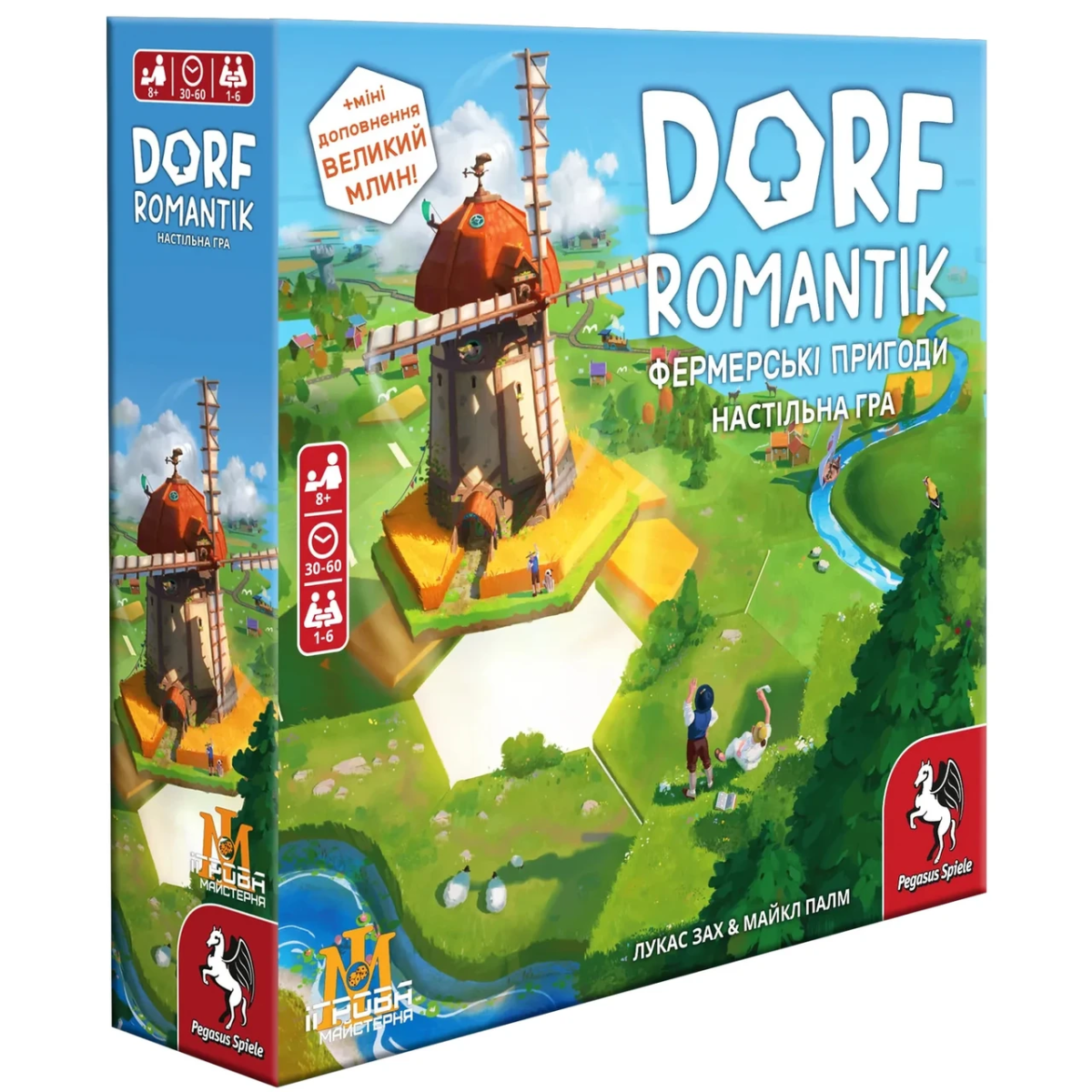 «Дорфромантік - Фермерські Пригоди» - це кооперативна настільна адаптація відеогри «Dorfromantik», що від самого початку мала в основі рушія настільні механіки зі створенням поля із плиток місцевості. У цій настільній стратегії ви будете додавати до мапи нові місцевості для виконання завдань, відкривати коробочки з новими компонентами завдяки механіці спадку й насолоджуватися сільськими краєвидами та головокрутним ігроладом.