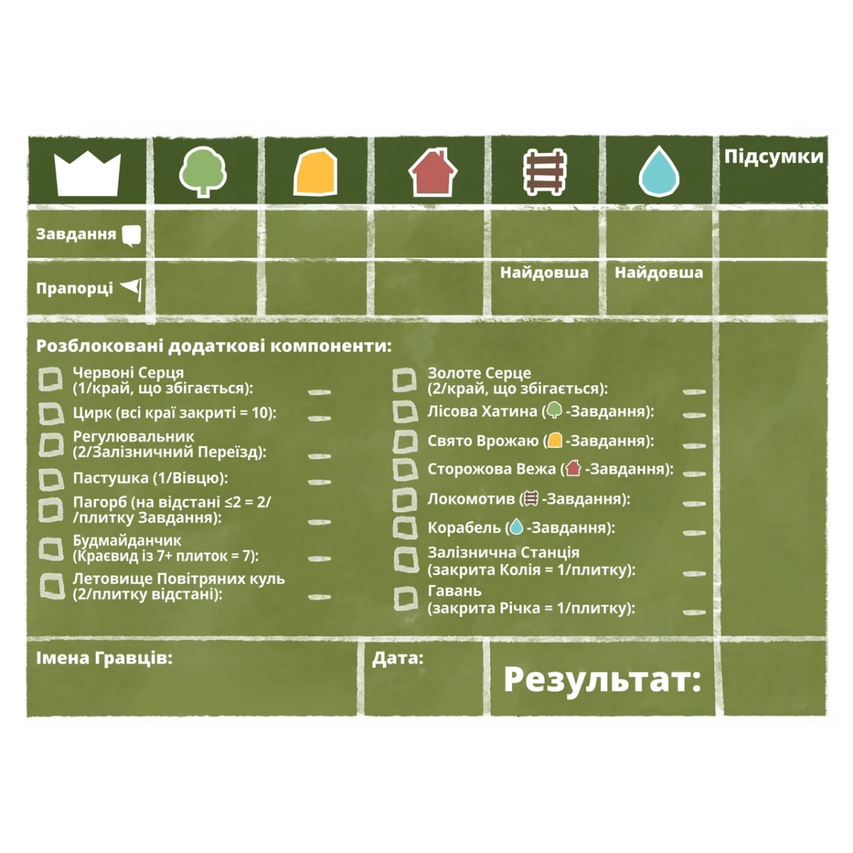 Гра завершується, щойно буде розміщено останню плитку територій. Після цього триває підрахунок переможних очок, які можна отримати за виконані завдання, найдовшу колію й річку, закриті території з прапорцями та усі додаткові компоненти, що ви розблокували з листа кампанії.
