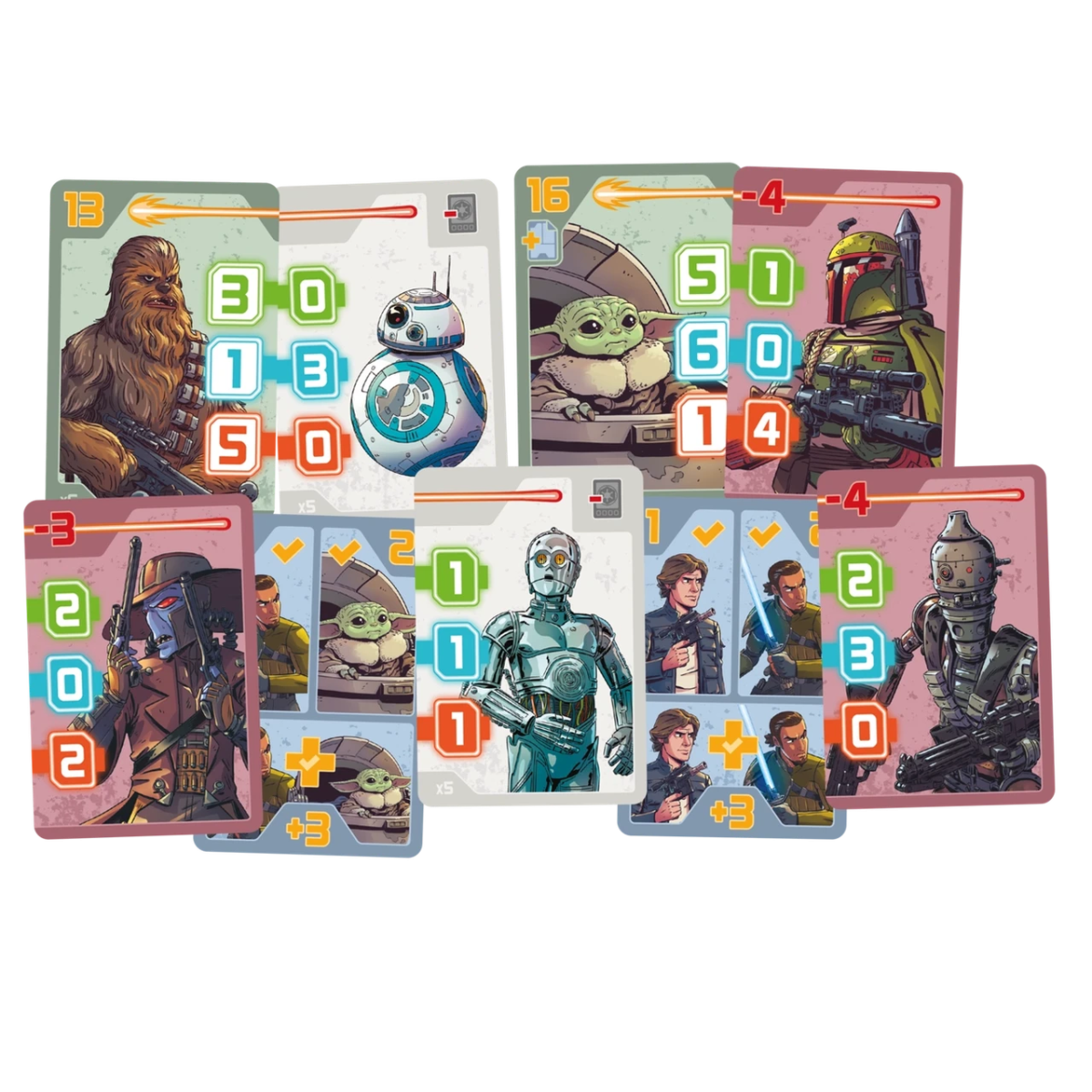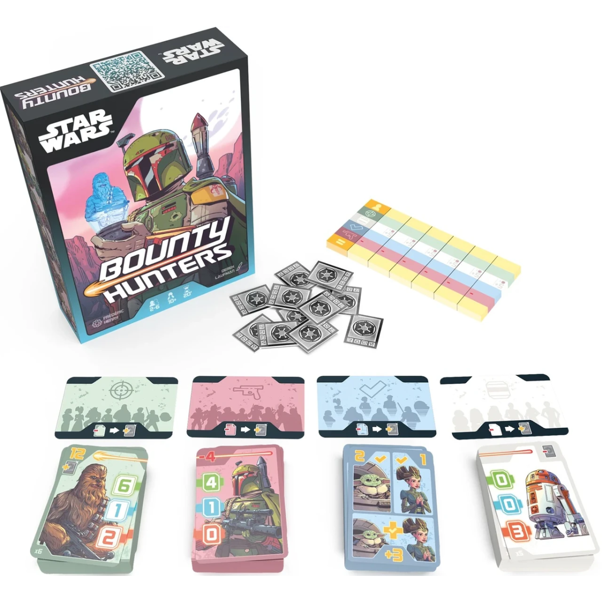 «Зоряні війни. Мисливці за головами» – це легка стратегічна карткова гра, у якій ви станете професійними мисливцями за головами, що розшукують цілі по всій неосяжній галактиці. Кого ви тільки не зустрінете в цій коробочці: Чубакку, Падме, Бобу Фетта, Гана Соло, Ґроґу, IG-11… Знайдіть вірних союзників, озбройтеся дроїдами й захоплюйте цілі, щоб стати найвідомішим мисливцем за головами!