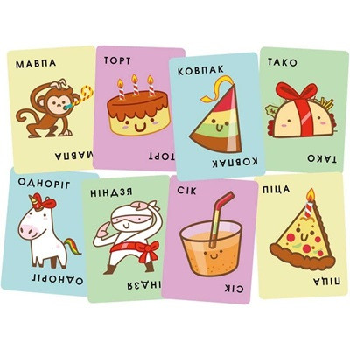 Підготуємо ж скоріше святковий стіл для нашої чудової вечірки! Якщо сказане слово збігається з малюнком на викладеній карті, потрібно якнайшвидше накрити викладені картки долонею. Так ми намагаємося вхопити ласий шматочок, доки його не з“їли інші.