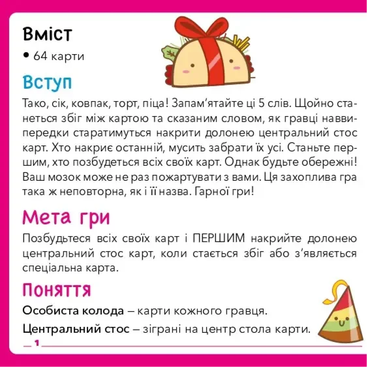 ОПИС НАСТІЛЬНОЇ ГРИ ТАКО СІК КОВПАК ТОРТ ПІЦА