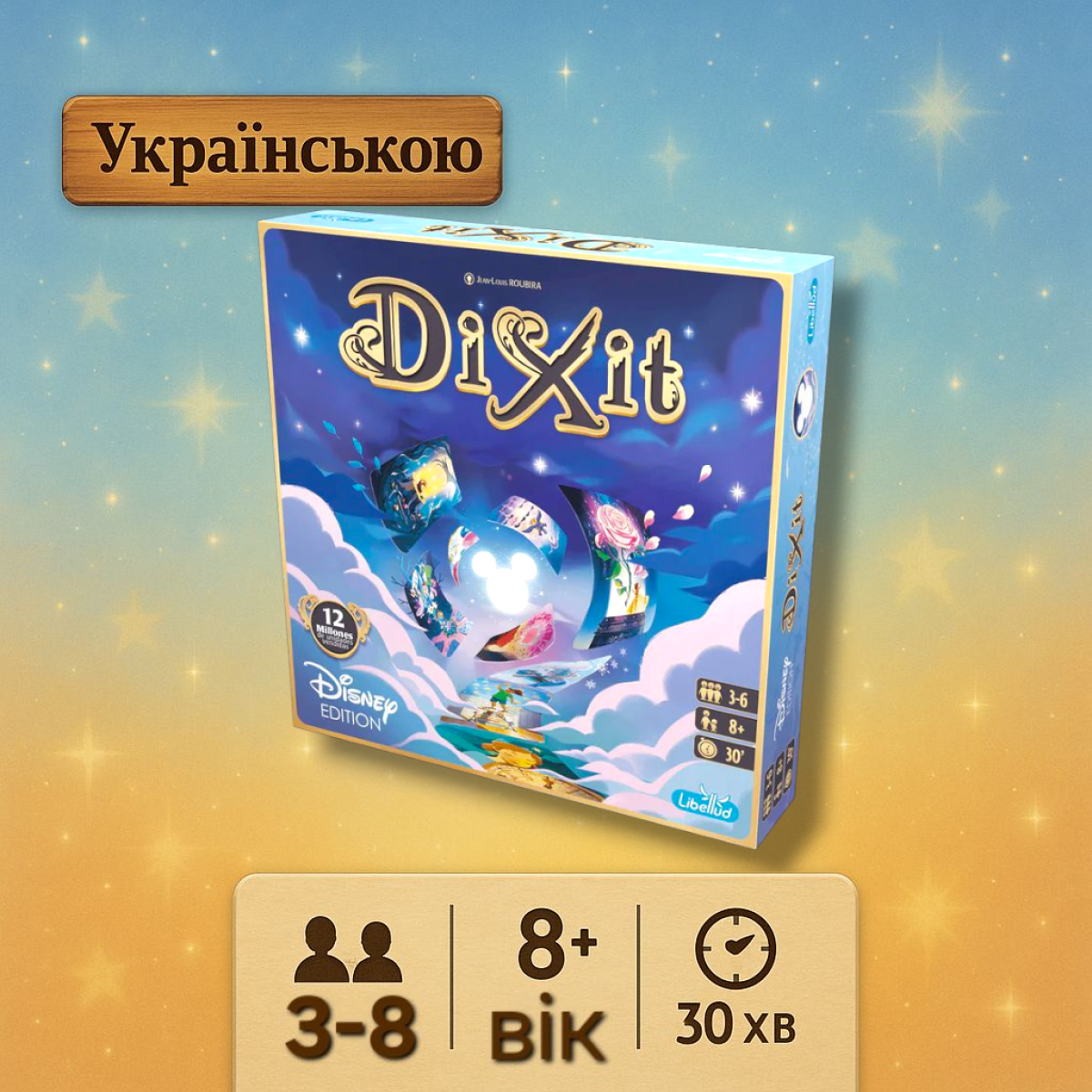 “Dixit: Disney Edition“ — це спеціальна версія популярної настільної гри “Діксіт“, в якій магія і чарівність Діснея зливаються з витонченим ігровим процесом “Діксіт“. Ця гра ідеально підходить для всієї родини і особливо потішить шанувальників фільмів Діснея. У “Діксіт: Дісней“ ви зможете знову пережити чарівні моменти своїх улюблених фільмів через захоплюючі ілюстрації та захопливу ігрову механіку.