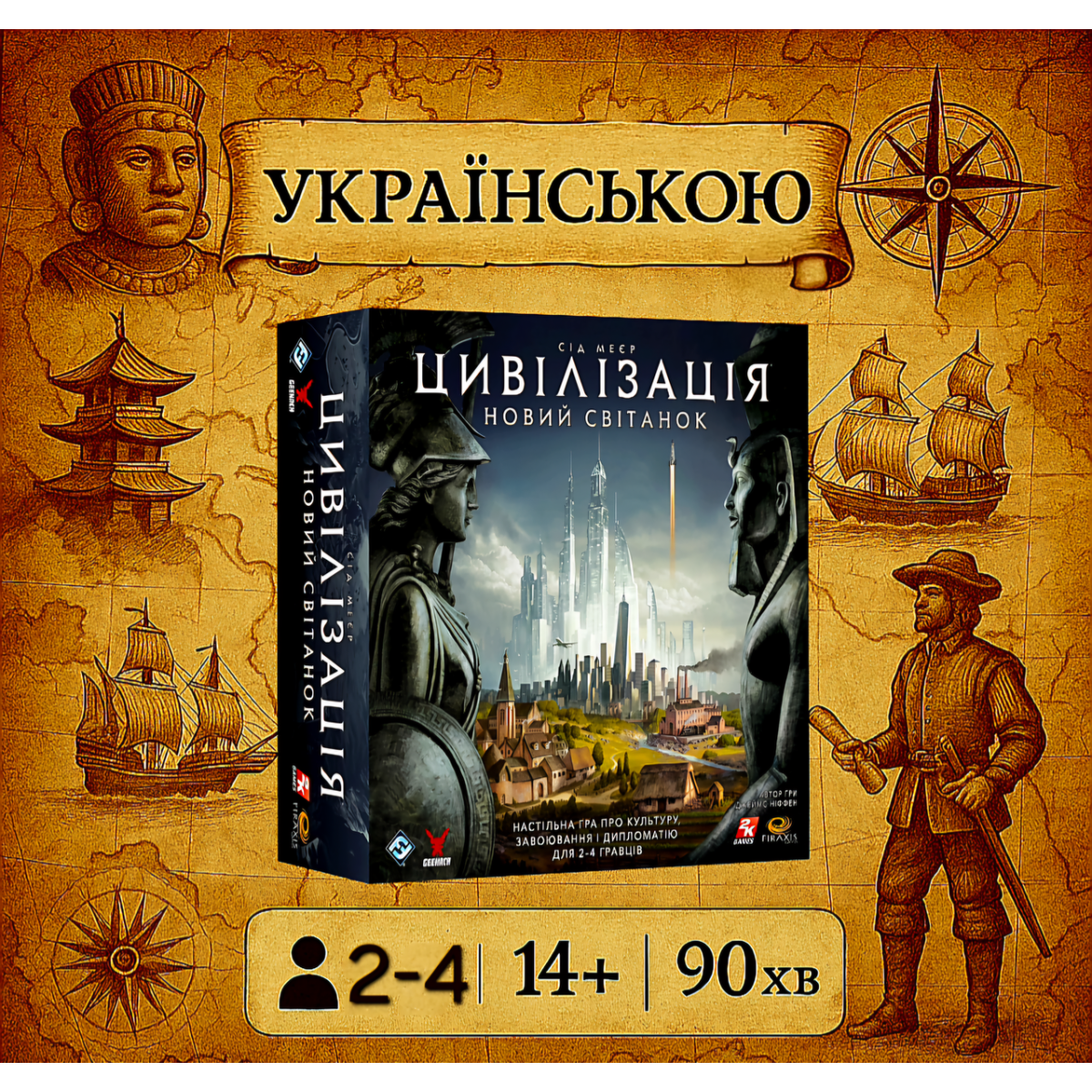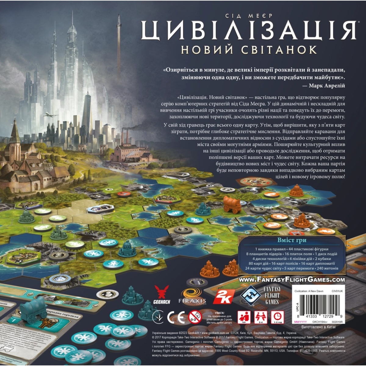 “Цивілізація: Новий світанок“ (Civilization: A New Dawn) — це настільна гра, натхненна культовою комп’ютерною серією ігор “Civilization“. Розроблена Firaxis Games та видана компанією Asmodee, вона переносить вас у світ стратегічного управління, де вам доведеться побудувати свою цивілізацію від стародавніх часів до сучасності, конкуруючи з іншими гравцями за домінування і процвітання.