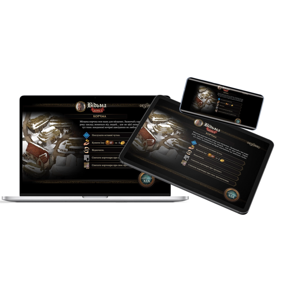 Інтерактивний додаток: Цифровий додаток значно розширює можливості гри, надаючи динамічну взаємодію з ігровим процесом, включаючи таймери, аудіоефекти та управління сюжетними елементами.