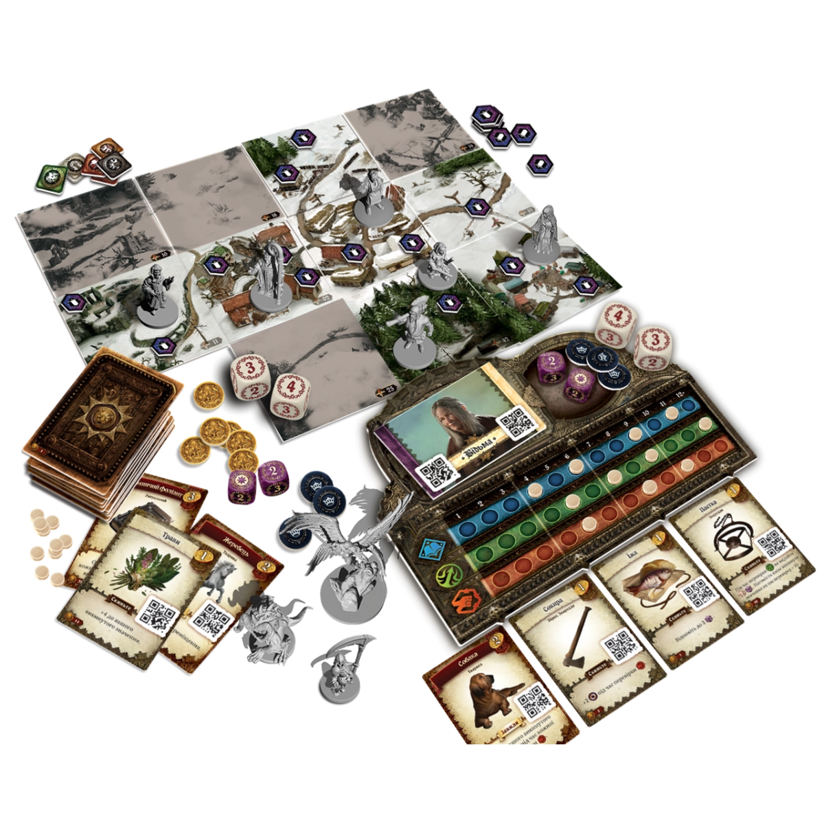 1 Комплект жетонів і фішок: Жетони для відстеження різних елементів гри, таких як здоров“я та ресурси.