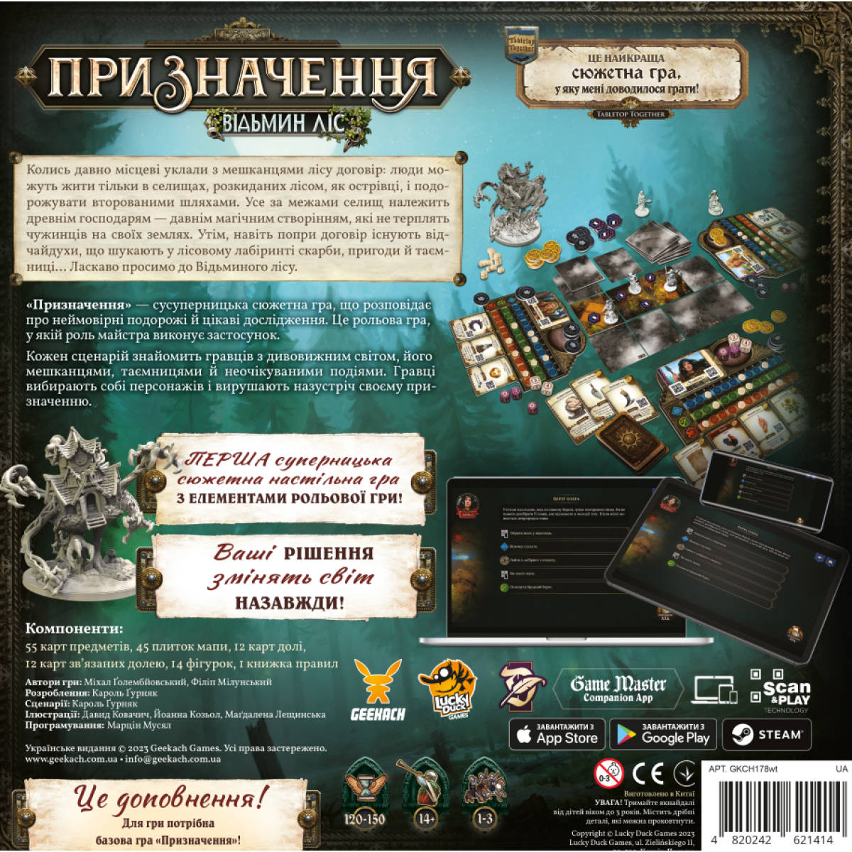 “Призначення. Відьмин ліс“ (Destinies: The Witchwood) є чудовим доповненням до оригінальної гри, яке збагачує ігровий досвід новими сценаріями, персонажами та механіками. Це розширення ідеально підходить для тих, хто хоче заглибитися у світ “Призначення“ та випробувати нові пригоди в захоплюючій та містичній атмосфері лісу.
