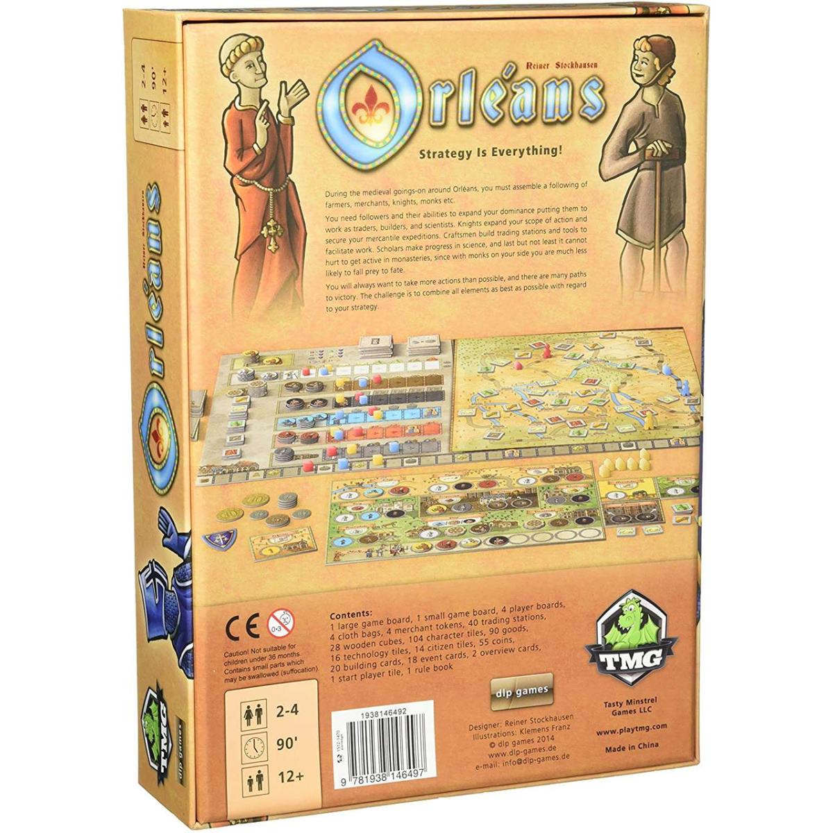 Опис: “Орлеан“ (Orleans) — це стратегічна настільна гра з механікою побудови “мішка“ (bag-building), у якій гравці очолюють торгові доми у середньовічній Франції. Ваше завдання — розширити свій вплив, розвивати економіку та набирати різноманітних персонажів, кожен з яких надає унікальні можливості. Гра поєднує в собі елементи управління ресурсами, виконання місій та поліпшення стратегій через підбір і використання персоналу.