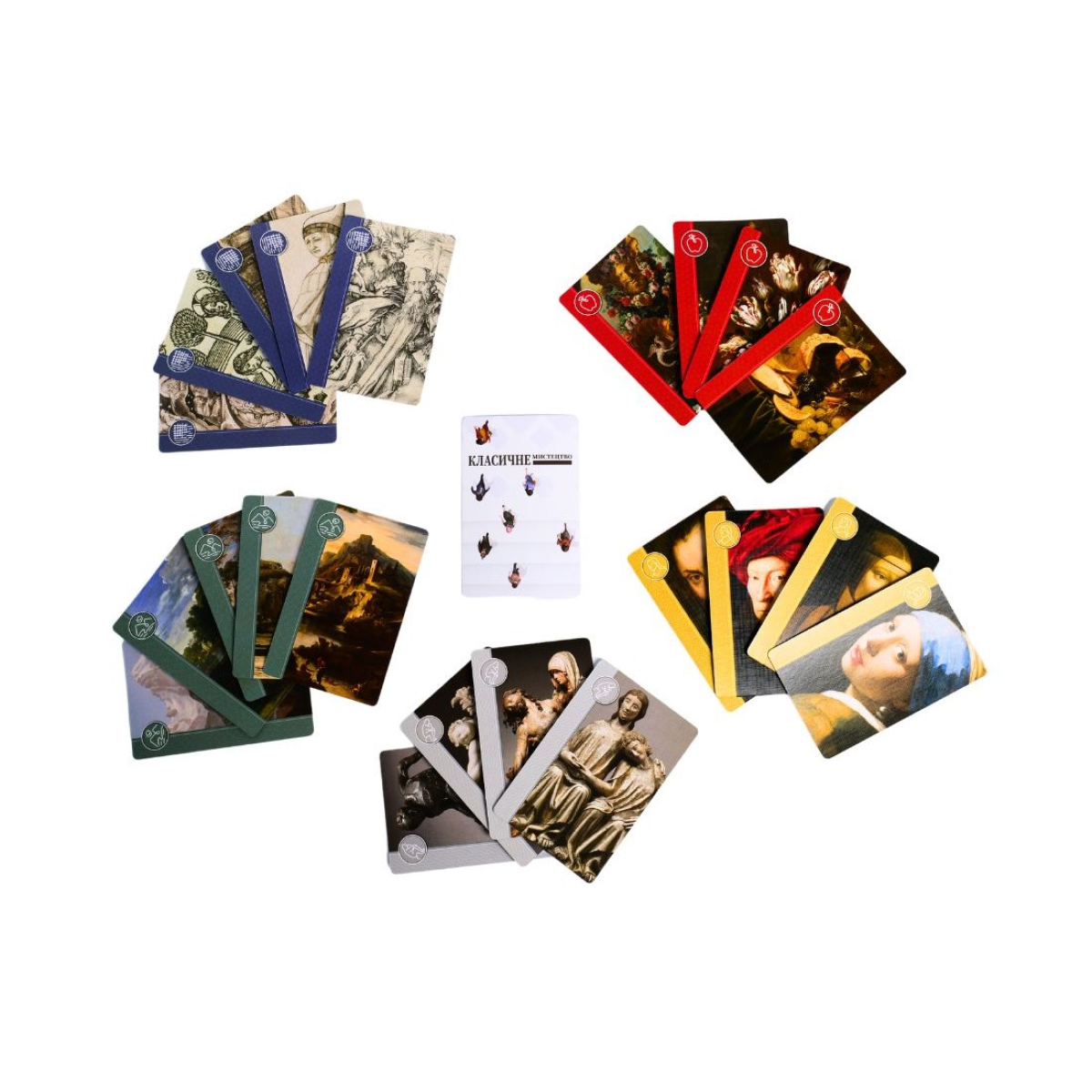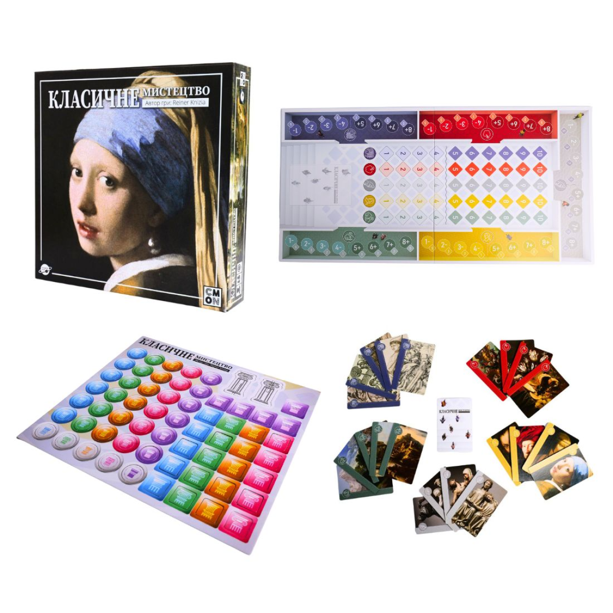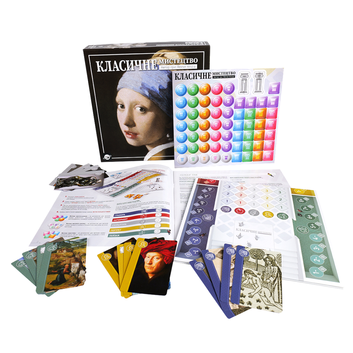 Опис: “Класичне Мистецтво“ — це захоплююча настільна гра для 2-6 гравців, що пропонує унікальну можливість зануритися у світ живопису і культури. Гравці стають художниками, які змагаються за те, щоб створити найвідоміші твори мистецтва, використовуючи свої стратегічні навички і креативність. Гра не лише розвиває естетичний смак, а й пропонує цікаву механіку, що базується на зборі карт і управлінні ресурсами.