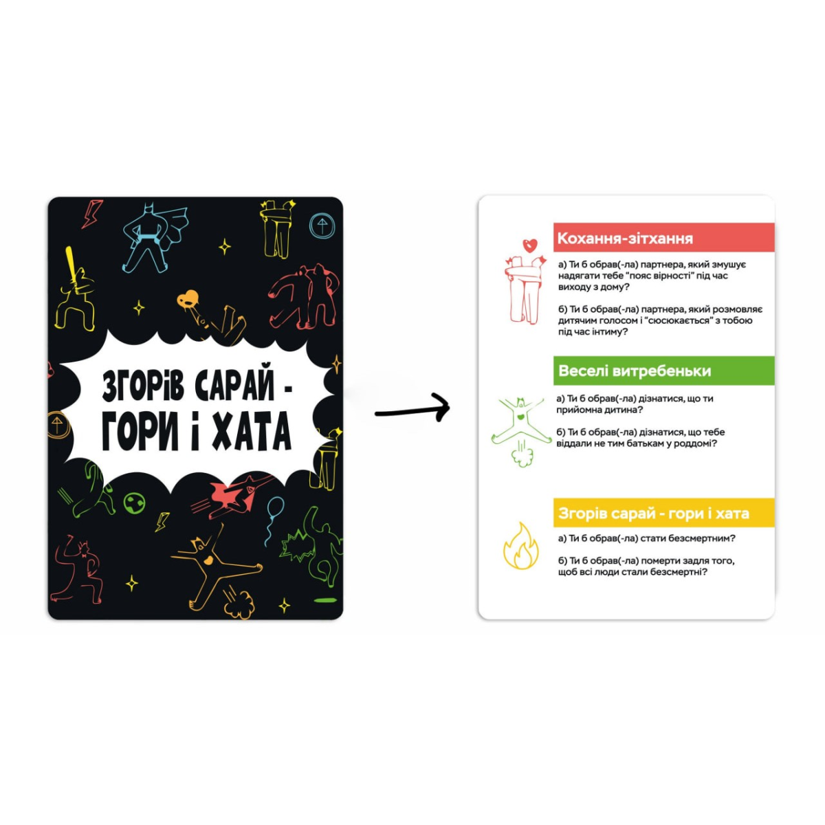 “Згорів сарай - гори і хата“ — це гра, яка принесе море задоволення та гарного настрою. Вона не тільки розважає, але й спонукає гравців швидко реагувати на обставини та знаходити нестандартні рішення у складних ситуаціях. Ідеальний вибір для тих, хто любить несподівані виклики та легкий гумор!