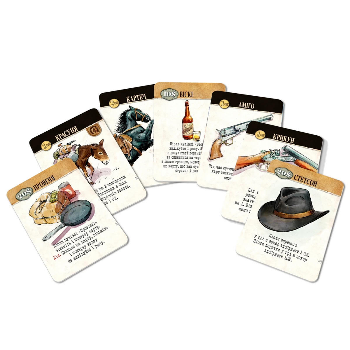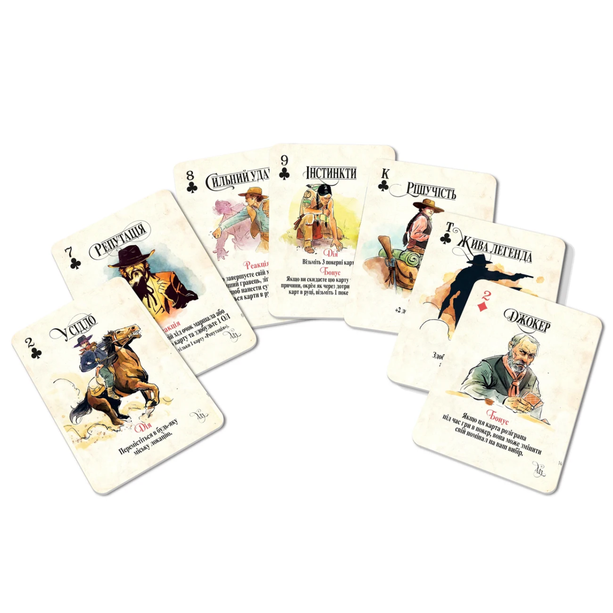 «Легенди Дикого Заходу» — це чудова можливість зануритися у світ пригод, захопливих дуелей та карколомних місій. Українське видання дозволяє не тільки насолоджуватися грою рідною мовою, але й оцінити високу якість компонентів. Це гра для тих, хто любить історії про ковбоїв і прагне відчути дух Дикого Заходу за настільним столом.