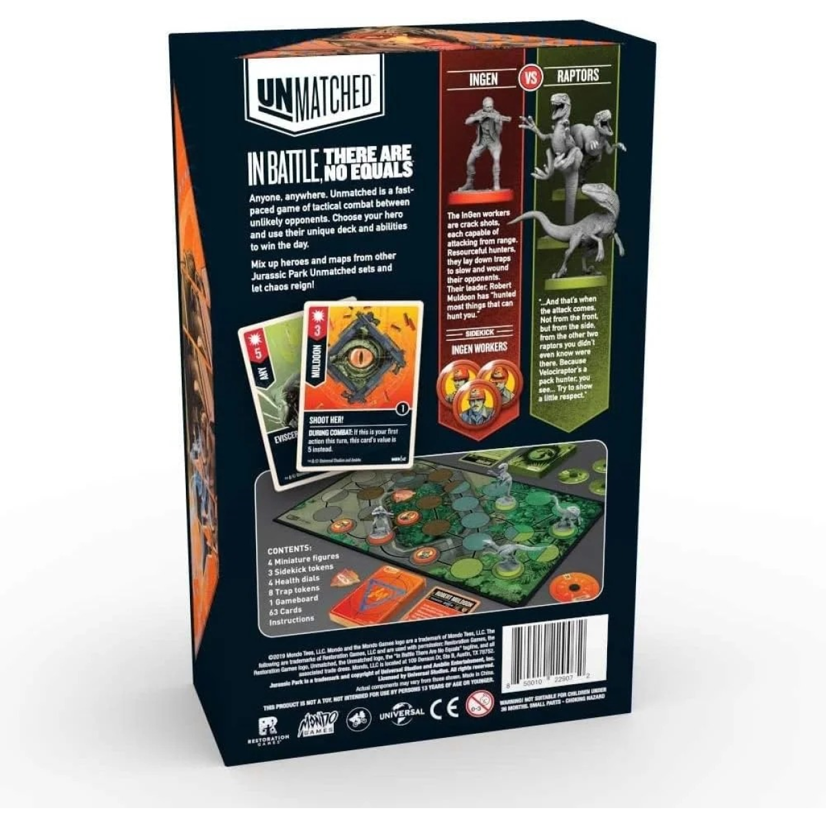 ???? Unmatched: Парк Юрського періоду – InGen vs Raptors – це захопливе протистояння у світі “Парку Юрського періоду“, де ви зможете поборотися за виживання як розумні хижаки-велоцираптори або досвідчений охоронець Інген Роберт Малдун. Тепер і ви можете стати частиною цієї небезпечної гри на виживання!