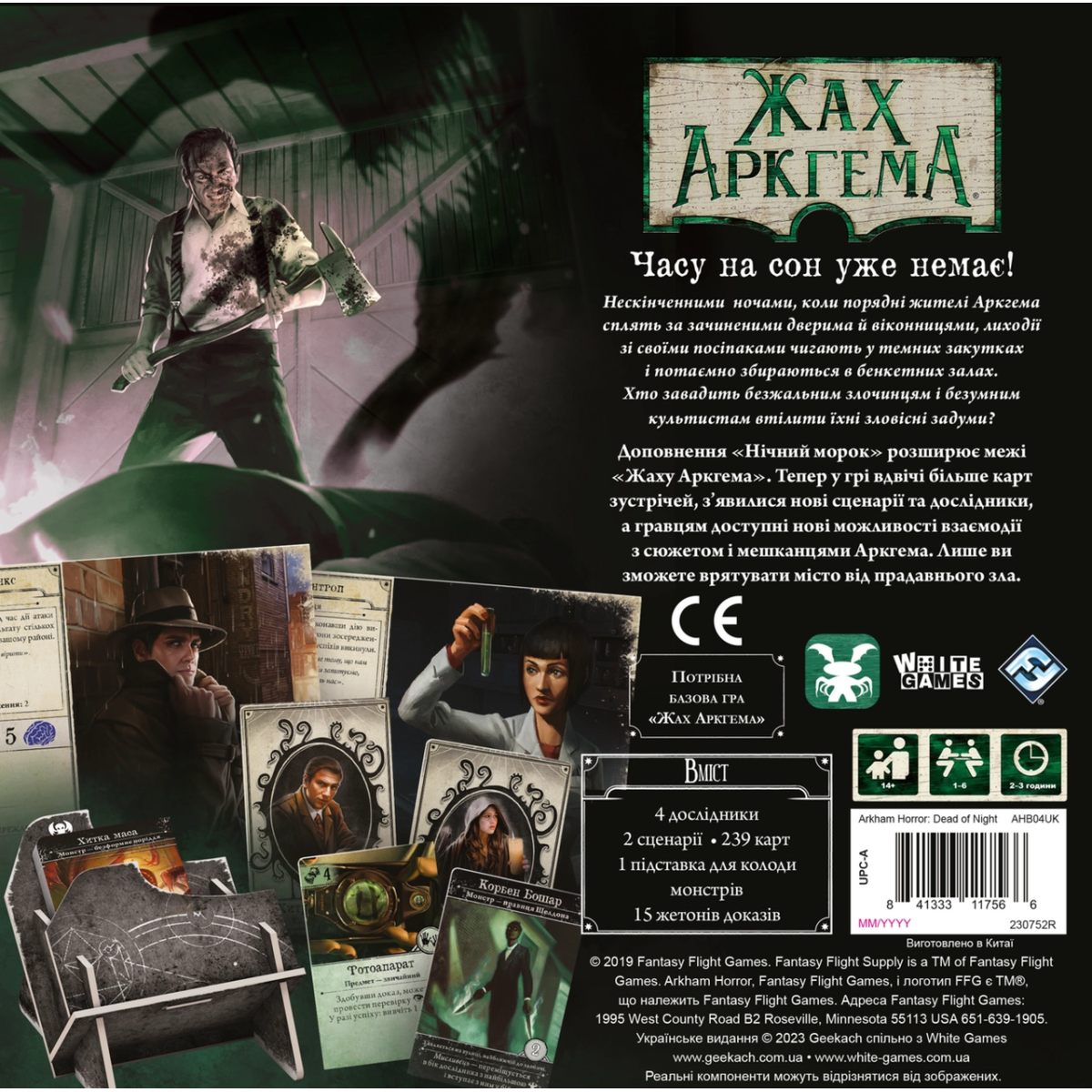 ???? Жах Аркгема. Третя редакція: Нічний морок – це доповнення до відомої гри “Жах Аркгема“, що занурює вас у темряву та жах, де кожен крок може стати останнім. Це новий рівень гри, де жахи ночі, монстри та загадкові події будуть крок за кроком наближатися до вас. Ідеальний вибір для фанатів кооперативних ігор, що прагнуть нових викликів та інтригуючих механік.