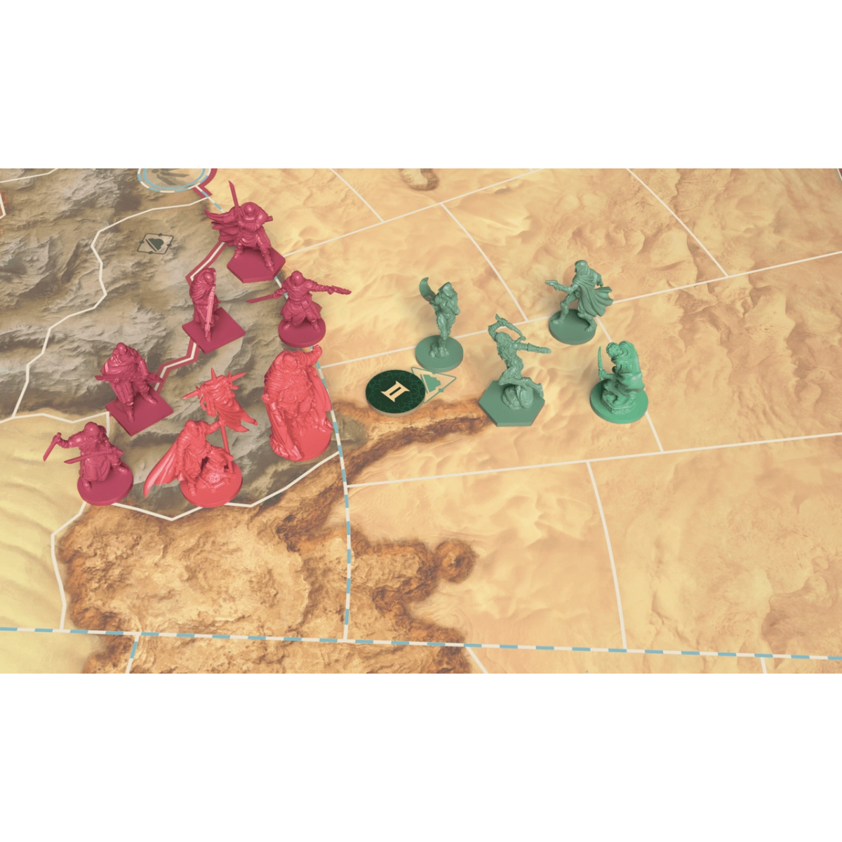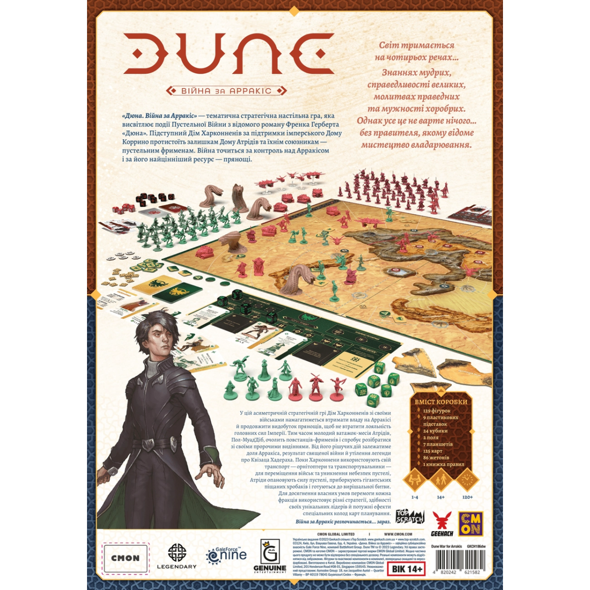 Тематичність і глибина: гра повністю передає атмосферу Дюни, від стратегічних битв до політичних інтриг. Кожен хід важливий і може змінити хід гри.