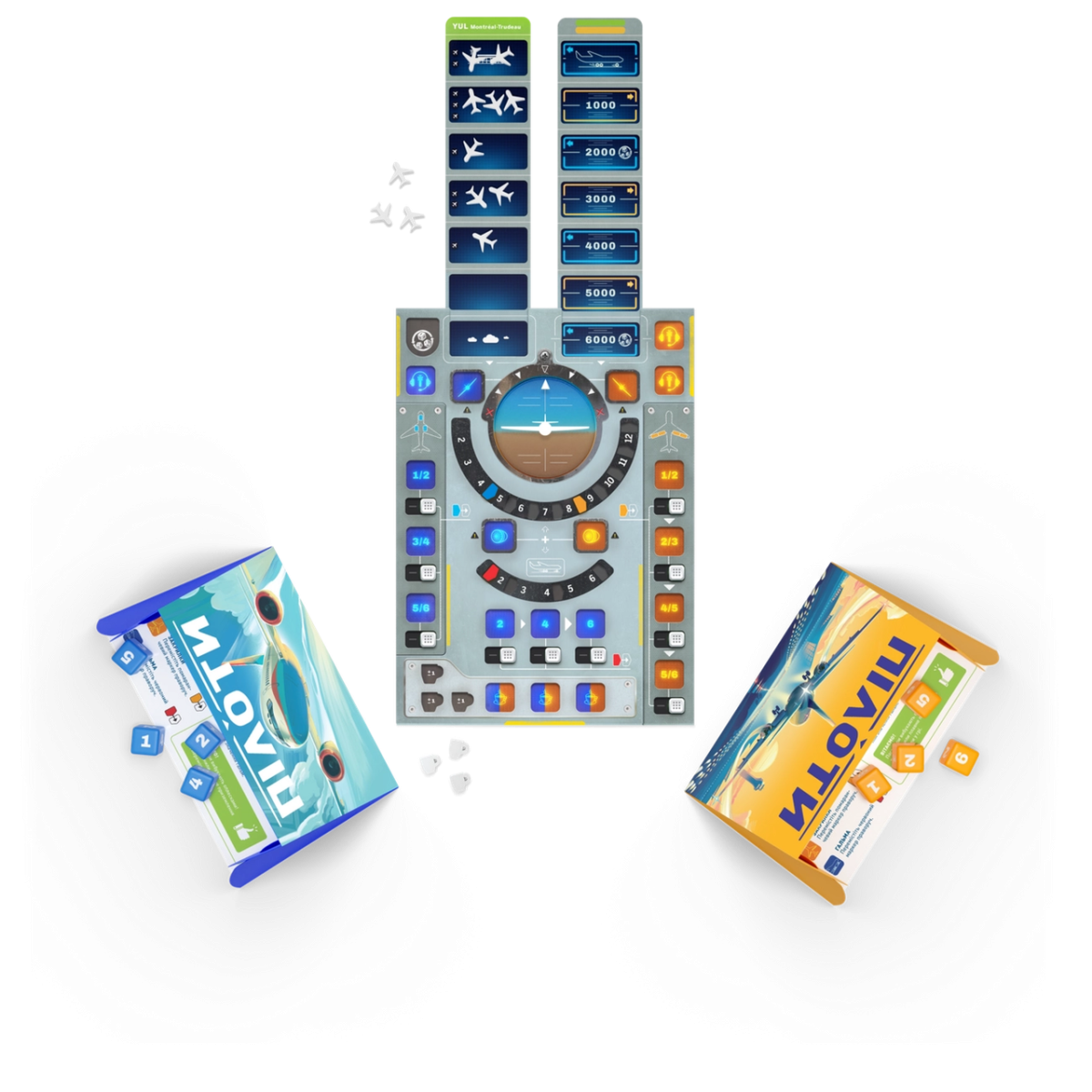 ???? Пілоти (Sky Team) – це динамічна та захоплююча кооперативна настільна гра, в якій вам і вашому напарнику доведеться стати пілотами двох літаків, виконуючи складні маневри в небі. Гравці повинні працювати в команді, щоб правильно керувати літаками і долати перешкоди, уникаючи зіткнень і вчасно виконуючи потрібні дії.